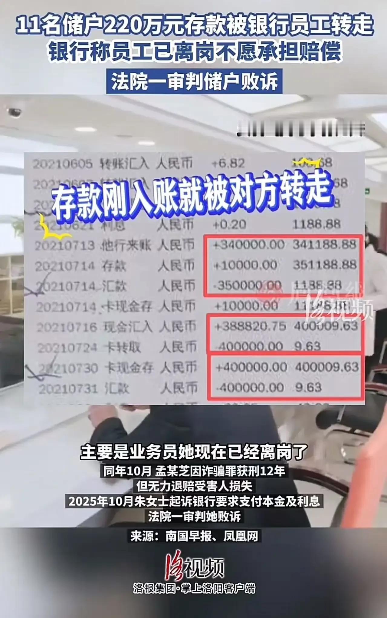 “这样谁还敢把钱存银行?”内蒙古呼伦贝尔,女子将75万存入银行,那是她攒了一辈子的钱,以为放银行最安全,可是万万没想到,柜员压根没把钱存入她的账户,而是偷偷转走! 更离谱的是被骗的不止她一个,足足有11个人,合计220多万! 这不仅仅是一场银行的“失误”那么简单,而是一场令人震惊的信任危机。这些受害者中,有的是普通工薪族,有的是家庭主妇,有的甚至是靠着一点点积蓄养家糊口的老人。面对突如其来的财产损失,他们的心情像被狠狠揪了一把——信任的天平彻底崩塌,曾经以为的“银行最安全”的保障变成了噩梦。 试想一下,75万、220万,这不是一笔小数目,而是许多家庭的全部积蓄。一个家庭的未来,一次投资的希望,竟然在瞬间化为泡影。更令人心碎的是,这些受害者大多都不知道自己到底被骗了多深,直到银行的账户余额一再减少,才意识到事情的严重性。有人说,“银行存款就是安全的保障”,但这次事件告诉我们,信任是一把双刃剑,一旦被伤害,再坚固的信仰也会崩塌。 更令人愤怒的是,事件背后似乎隐藏着某些不为人知的黑幕。有人猜测,这或许不仅仅是个别柜员的“失误”,而是有人在暗中操控、利用银行系统的漏洞,甚至有人怀疑这是一起有预谋的诈骗大案。无论真相如何,这个事件都在提醒我们:在这个信息高速发展的时代,所谓的“安全”从来都不是理所当然的。它需要我们用心去守护,用智慧去辨别。 这件事情引发了社会的广泛关注,也让人开始反思:我们究竟还能相信谁?银行的保障还能信赖吗?更重要的是,面对这样的“信任危机”,我们又该如何自我保护?是盲目信任,还是保持警惕?答案或许并不复杂——只有我们自己,才是自己最坚实的防线。 这起事件,仿佛是一面镜子,照出了社会上那些被忽视的隐患,也让我们意识到,正能量不仅仅是口号,更是每个人用行动去守护的责任。我们不能让信任变成空谈,也不能让恐惧成为束缚。只要我们保持理性、增强警觉,才能在风雨中站得更稳,迎来真正的安全和希望。 所以,朋友们,面对这些令人心碎的故事,你会选择继续相信“银行最安全”吗?还是会像他们一样,学会用智慧去守护自己的每一份辛苦积蓄?这场“信任危机”,或许只是一个提醒——我们都应该成为自己最坚强的后盾。存款 存款减少真相