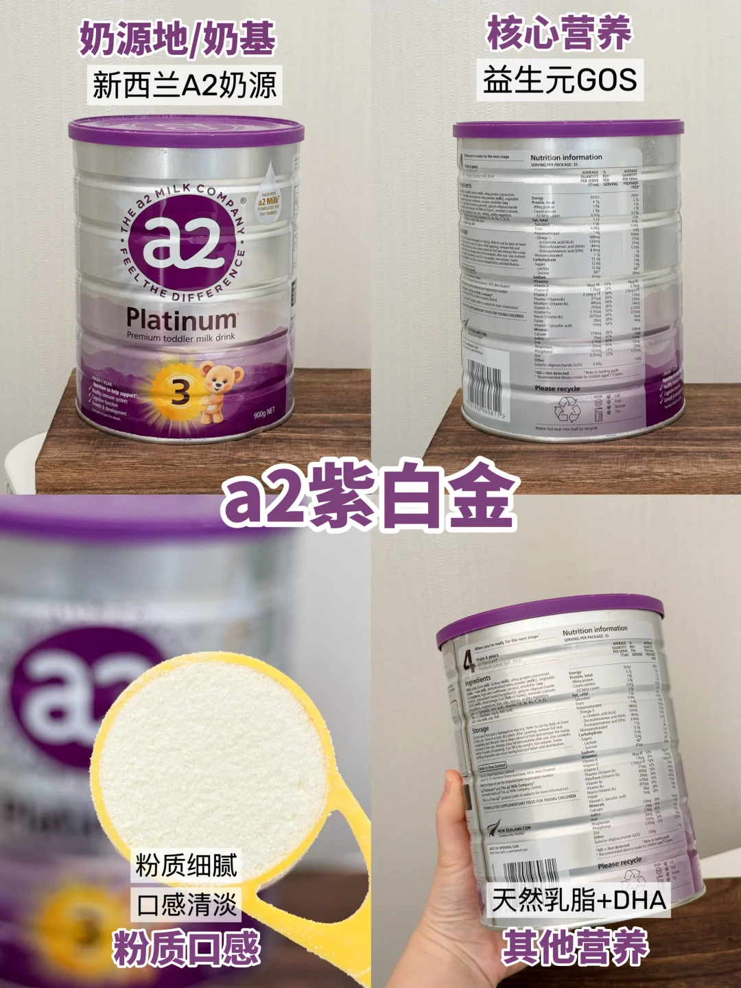 新西兰天然牧场有机奶源,A2蛋白+BBM-16V益生菌+天然乳脂+天然SN-2+DHA;新西兰有机认证;粉质细腻好冲泡,口感清淡不齁甜。适合肚肚娇嫩的宝宝