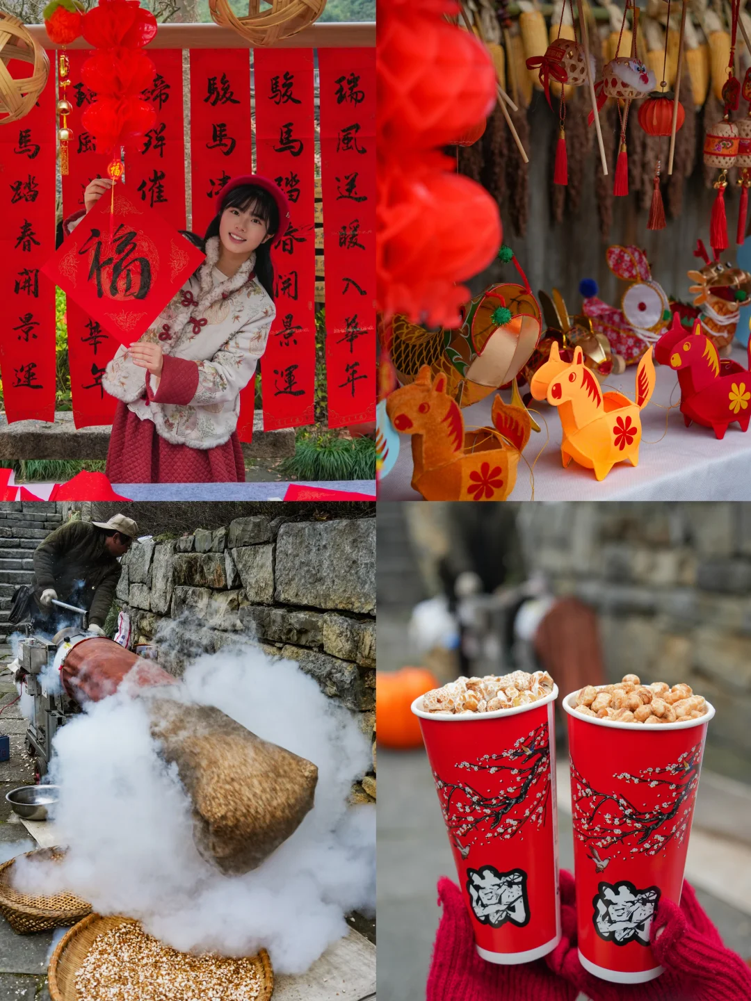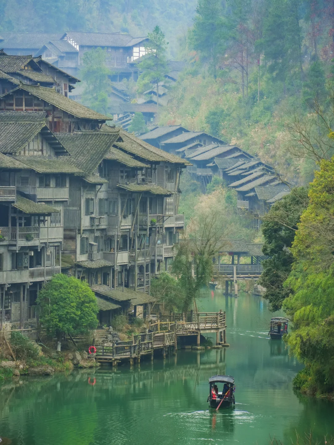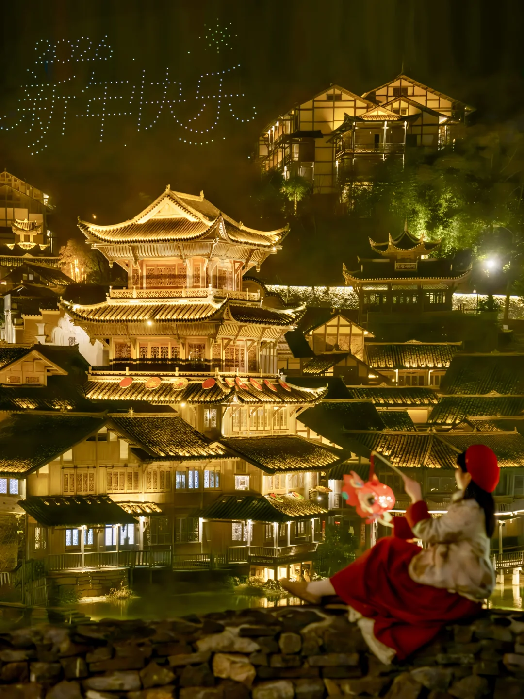 高铁🚄直达!贵州这处隐世秘境真的太美了! 白天,这里就是一幅水墨画,碧水墨瓦,小桥流水,乌篷船缓缓划过。 一到晚上,两岸的吊脚楼万盏灯火渐次点亮,仿佛是走进了千与千寻的世界里……这里就是贵州乌江寨。 刚从乌江寨回来,春节的活动超级丰富,🏮年味已经拉满! 迫不及待来给大家分享一下游玩攻略~ . 🚗自驾:导航“遵义乌江寨国际旅游度假区” 🚄高铁:遵义站或者遵义南站(南站更近,ps:遵义南站1月31日会正式改名成乌江寨站) . 乌江寨游玩指南: ✔打卡明星同款拍照机位 于文文、周迅、颜安、张韶涵、萧敬腾……等超多明星都来乌江寨拍过照,想要解锁同款机位的宝,赶紧来! ✔体验非遗手工:竹编、花灯、扎染、刺绣……在乌江寨都可以体验到。 ✔逛新春市集:童年时候的爆米花,手写春联,糖画、打糍粑……童趣满满! ✔观看抬年猪仪式:超级热闹,新年的氛围直接拉爆!晚上再吃一顿八方宴,品尝下特色刨锅汤(杀🐷饭)。 ✔看丰富的节目表演 ✅非遗独竹漂:乌江寨的山水灵气,表演者身姿轻盈的在水上移动,绝对堪称一场视觉宴。 ✅掌灯仪式+傩舞火秀:等到夜幕降临,乌江河畔灯火亮起,掌灯仪式便拉开帷幕,还有超震撼的傩舞火🔥秀。 ✅板凳龙巡游:巨大的龙头由三四人抬着往前走,龙身是一节一节的板凳一盏盏竹灯连接而成,在夜幕下熠熠生辉,超级热闹。 ✅打铁花:铁花炸裂如星河倾泻,照亮黑夜,壮观又浪漫! ✅无人机灯光秀:马年主题的无人机灯光秀,还有祝福语,真的太有心了! ✅篝火打跳夜:大家手拉手围着篝火跳舞,火焰跳动,音乐响起,过年的氛围浓浓,还有火壶表演,火除邪崇,趋吉避祸,百家安宁。 ✅烟花🎆盲盒:烟花开盲盒,每晚都有不同的惊喜!新春还有限定活动,想想都觉得期待! 高铁直达🚄新年不知道去哪里,就来这座藏在大山里的世外桃源,感受非遗年味吧~