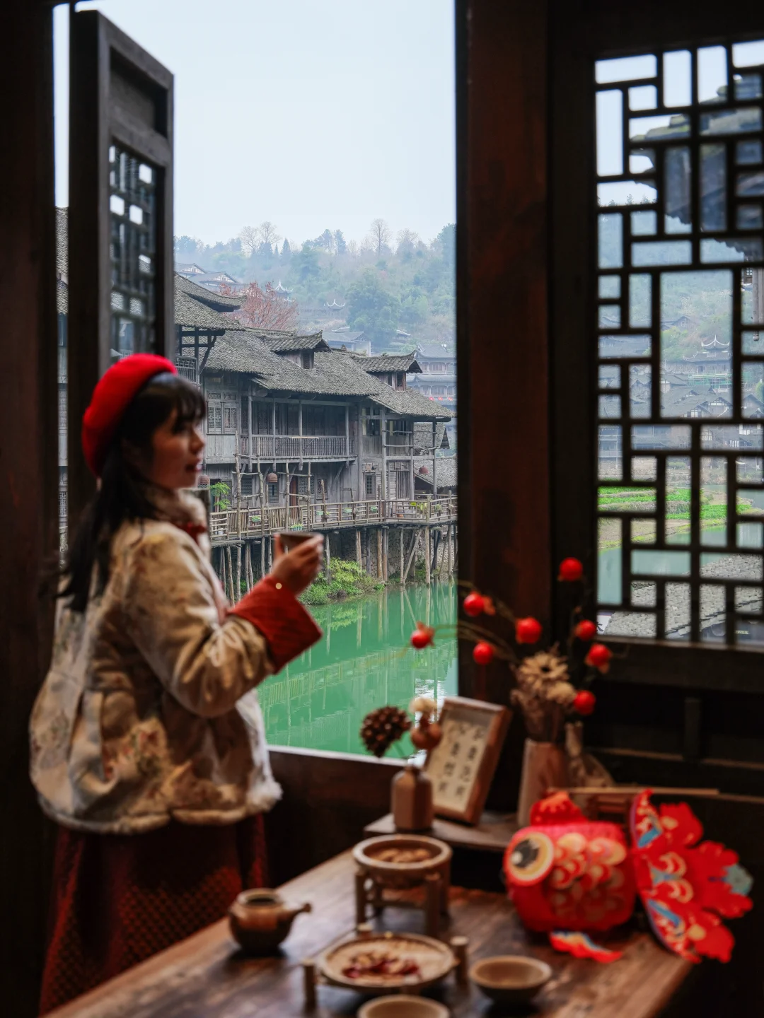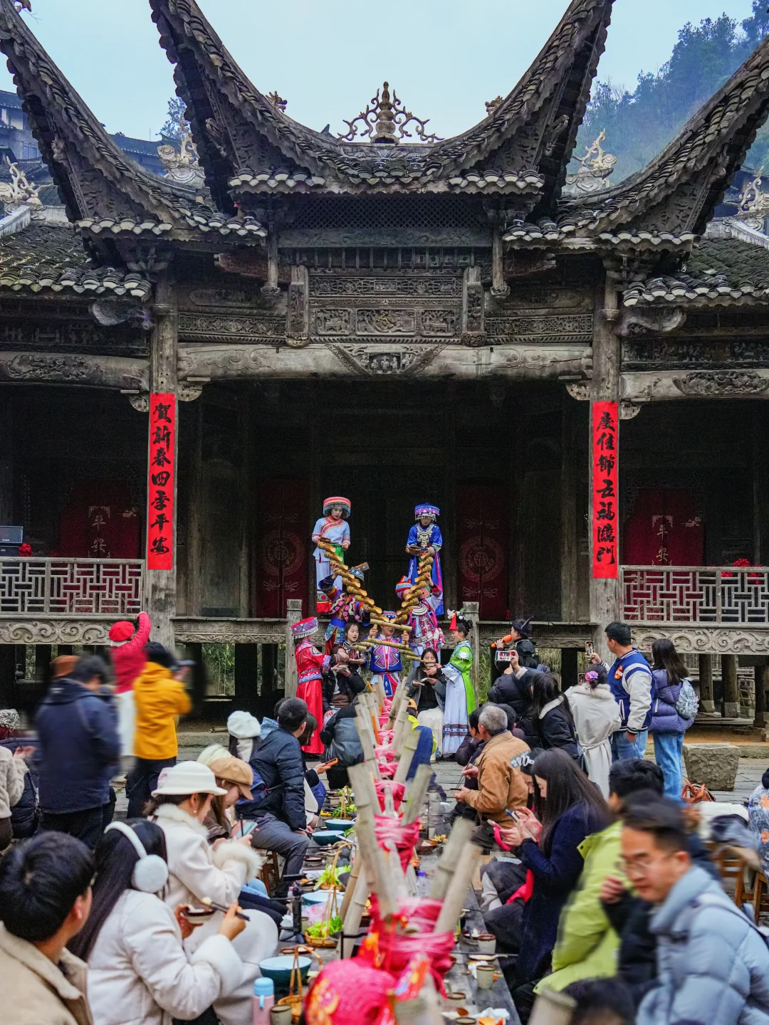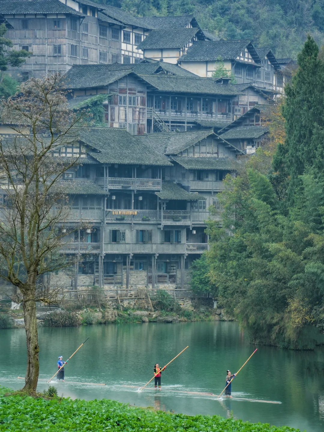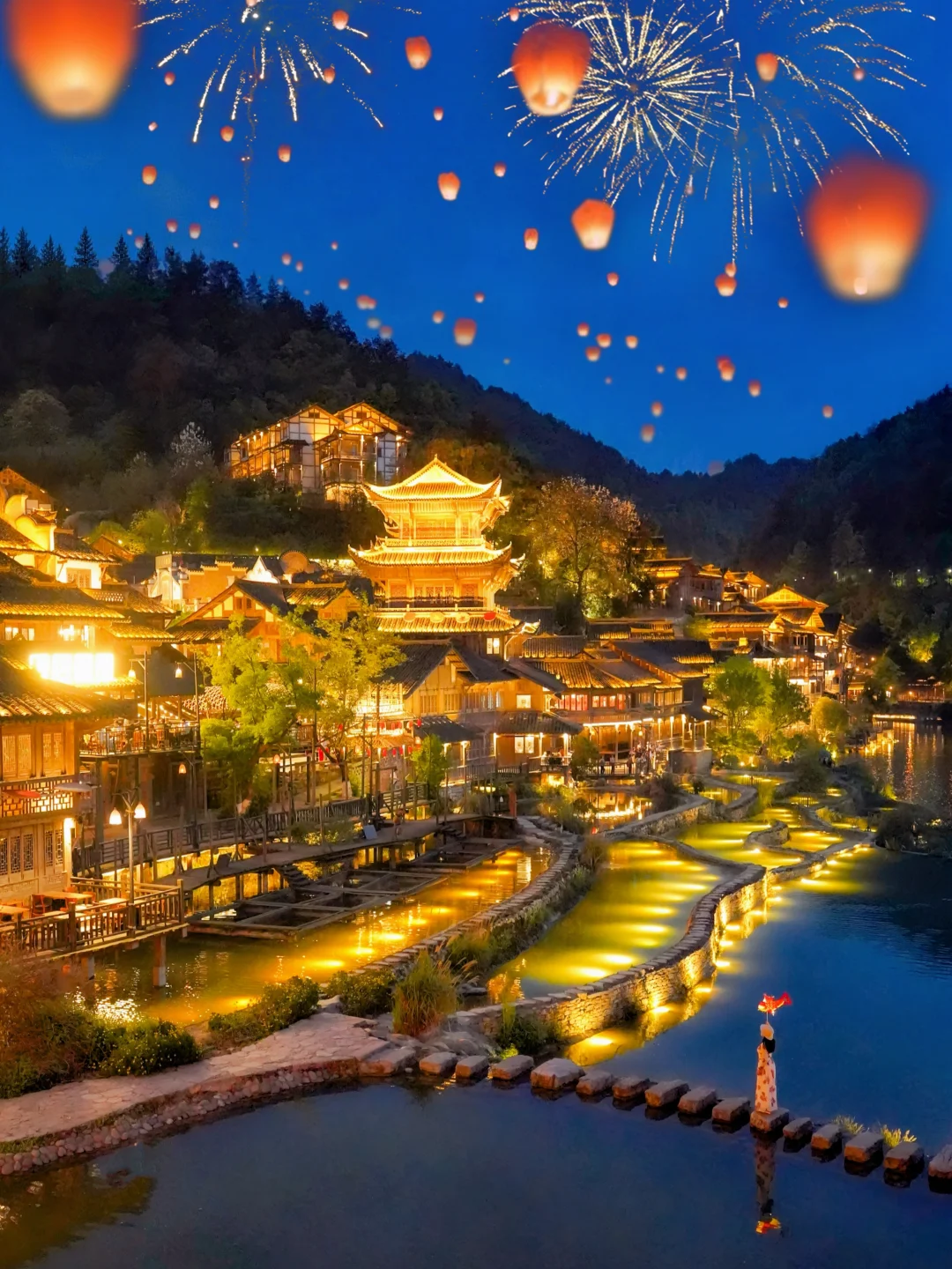 高铁🚄直达!贵州这处隐世秘境真的太美了! 白天,这里就是一幅水墨画,碧水墨瓦,小桥流水,乌篷船缓缓划过。 一到晚上,两岸的吊脚楼万盏灯火渐次点亮,仿佛是走进了千与千寻的世界里……这里就是贵州乌江寨。 刚从乌江寨回来,春节的活动超级丰富,🏮年味已经拉满! 迫不及待来给大家分享一下游玩攻略~ . 🚗自驾:导航“遵义乌江寨国际旅游度假区” 🚄高铁:遵义站或者遵义南站(南站更近,ps:遵义南站1月31日会正式改名成乌江寨站) . 乌江寨游玩指南: ✔打卡明星同款拍照机位 于文文、周迅、颜安、张韶涵、萧敬腾……等超多明星都来乌江寨拍过照,想要解锁同款机位的宝,赶紧来! ✔体验非遗手工:竹编、花灯、扎染、刺绣……在乌江寨都可以体验到。 ✔逛新春市集:童年时候的爆米花,手写春联,糖画、打糍粑……童趣满满! ✔观看抬年猪仪式:超级热闹,新年的氛围直接拉爆!晚上再吃一顿八方宴,品尝下特色刨锅汤(杀🐷饭)。 ✔看丰富的节目表演 ✅非遗独竹漂:乌江寨的山水灵气,表演者身姿轻盈的在水上移动,绝对堪称一场视觉宴。 ✅掌灯仪式+傩舞火秀:等到夜幕降临,乌江河畔灯火亮起,掌灯仪式便拉开帷幕,还有超震撼的傩舞火🔥秀。 ✅板凳龙巡游:巨大的龙头由三四人抬着往前走,龙身是一节一节的板凳一盏盏竹灯连接而成,在夜幕下熠熠生辉,超级热闹。 ✅打铁花:铁花炸裂如星河倾泻,照亮黑夜,壮观又浪漫! ✅无人机灯光秀:马年主题的无人机灯光秀,还有祝福语,真的太有心了! ✅篝火打跳夜:大家手拉手围着篝火跳舞,火焰跳动,音乐响起,过年的氛围浓浓,还有火壶表演,火除邪崇,趋吉避祸,百家安宁。 ✅烟花🎆盲盒:烟花开盲盒,每晚都有不同的惊喜!新春还有限定活动,想想都觉得期待! 高铁直达🚄新年不知道去哪里,就来这座藏在大山里的世外桃源,感受非遗年味吧~