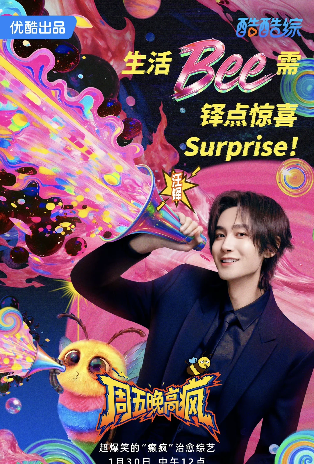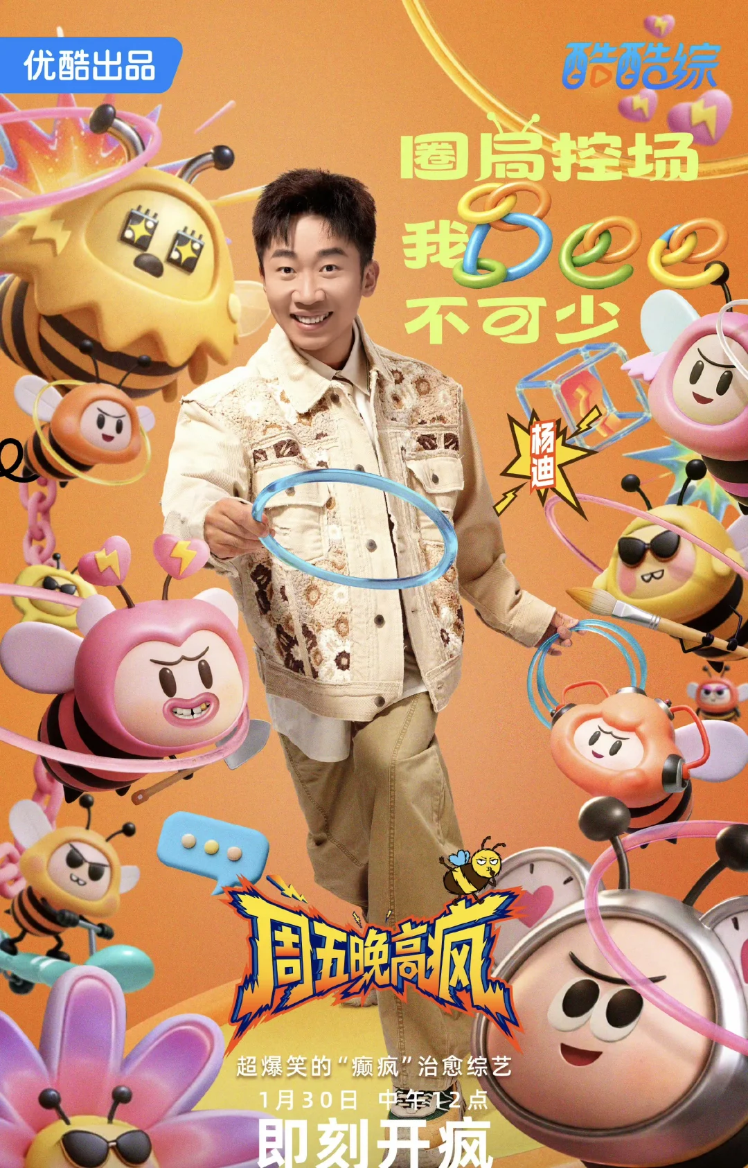 📺 👖全新解压综艺《周五晚高疯》于2026年1月30日中午12点正式开播,集结周冬雨、魏大勋、杨迪、祝绪丹、汪铎、王传君、高叶、周奇、付航 等九位艺人组成“Bee疯糖家族”,主打无厘头发疯式互动,瞄准职场人群的周五解压需求。 ⏰今日:1.30中午12:00爆笑来袭[派对R][派对R][派对R]