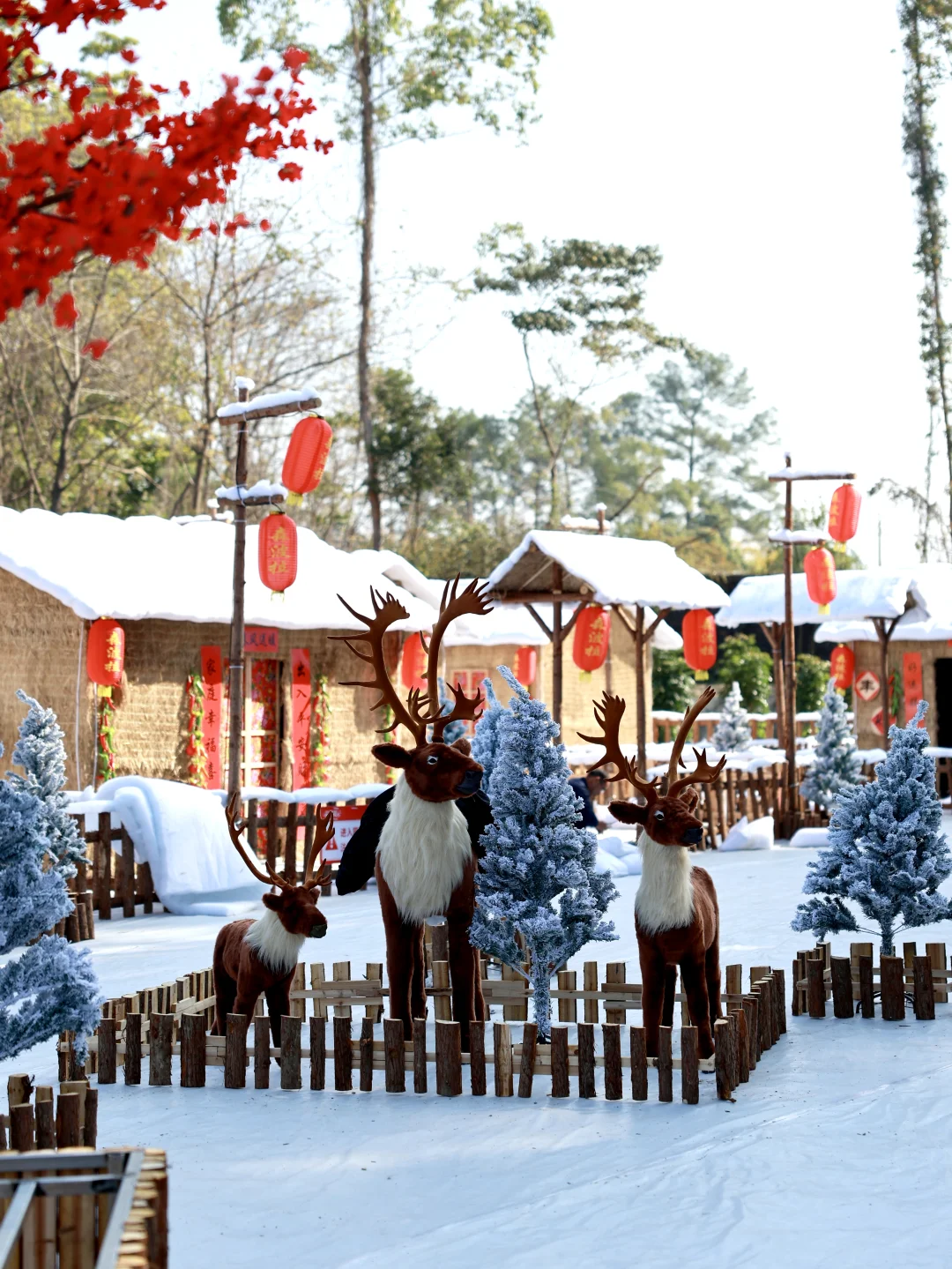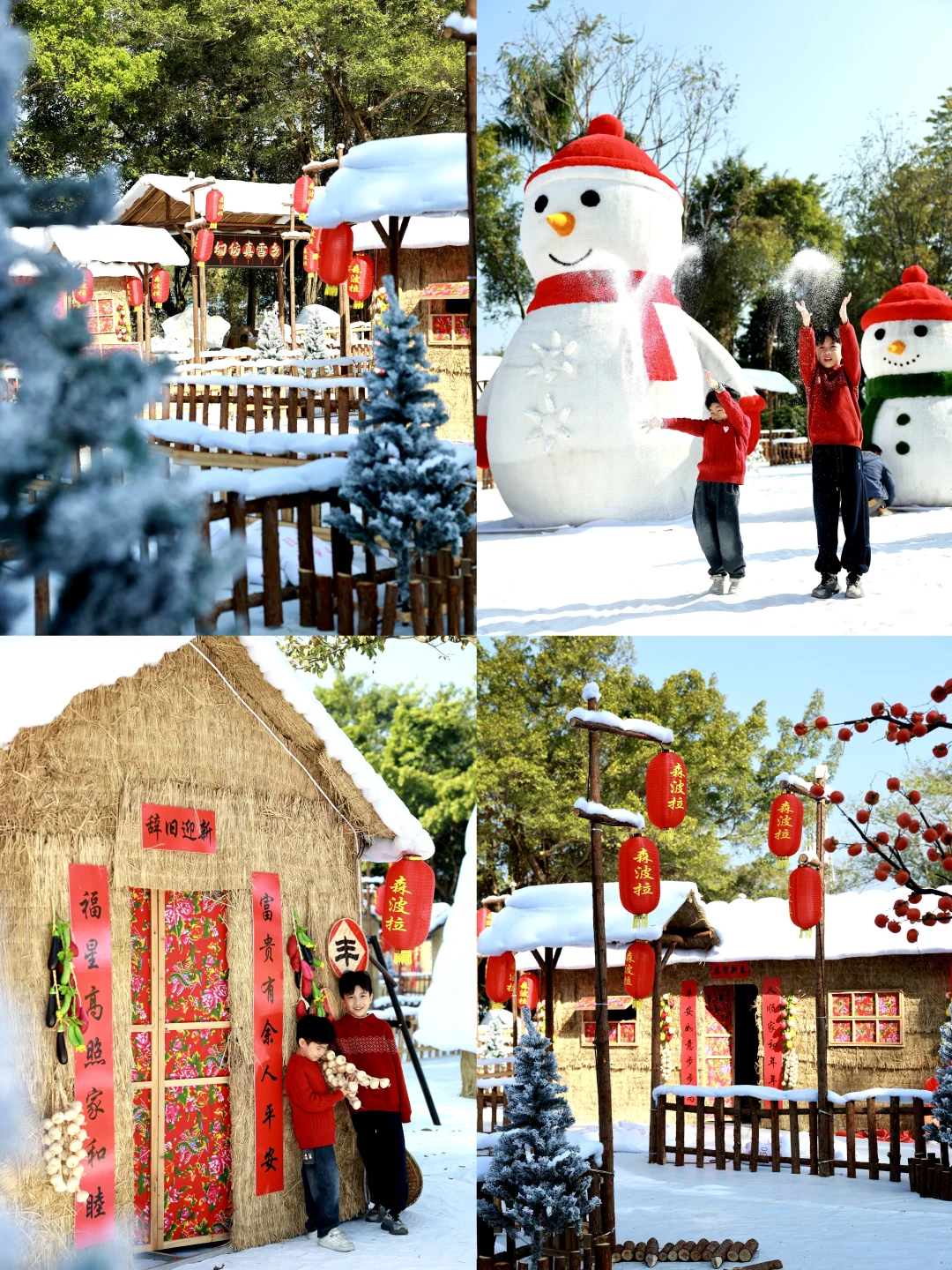 第二天一早就冲去「奇幻仿真雪乡」啦~虽然是仿真雪,但氛围真的绝!❄️ 小木屋盖上“雪被子”除了雪乡,园区里可玩的太多了:
