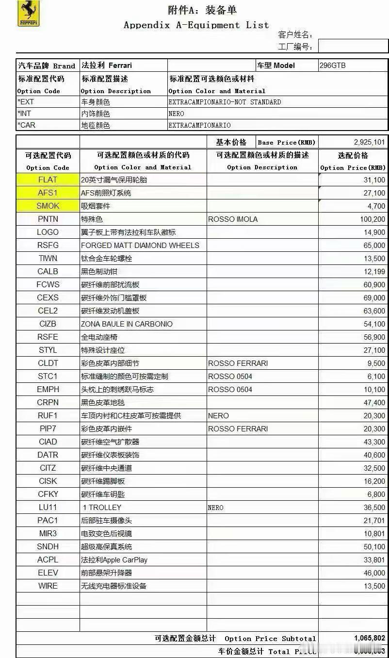 法拉利296GTB,特殊配色,高定版配置、百万选配