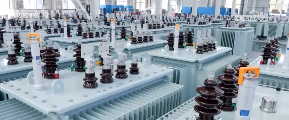 在广东佛山,一家电气设备企业生产线满负荷运转,仓库和停车场堆满了待交付的变压器产品。