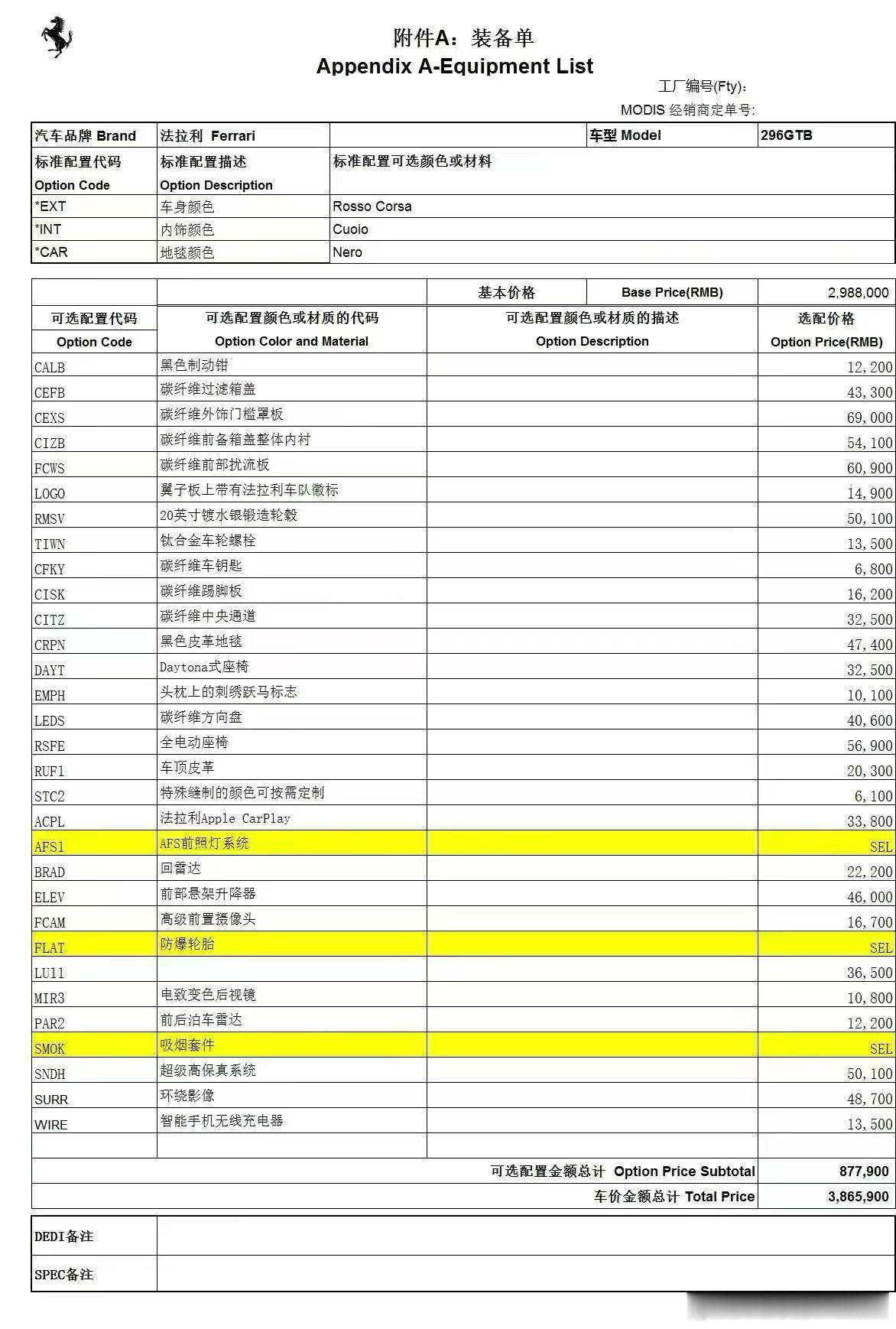 法拉利296 GTB,迪通拿座椅 ,配置选配80万+ 高定版配色,高定版配置
