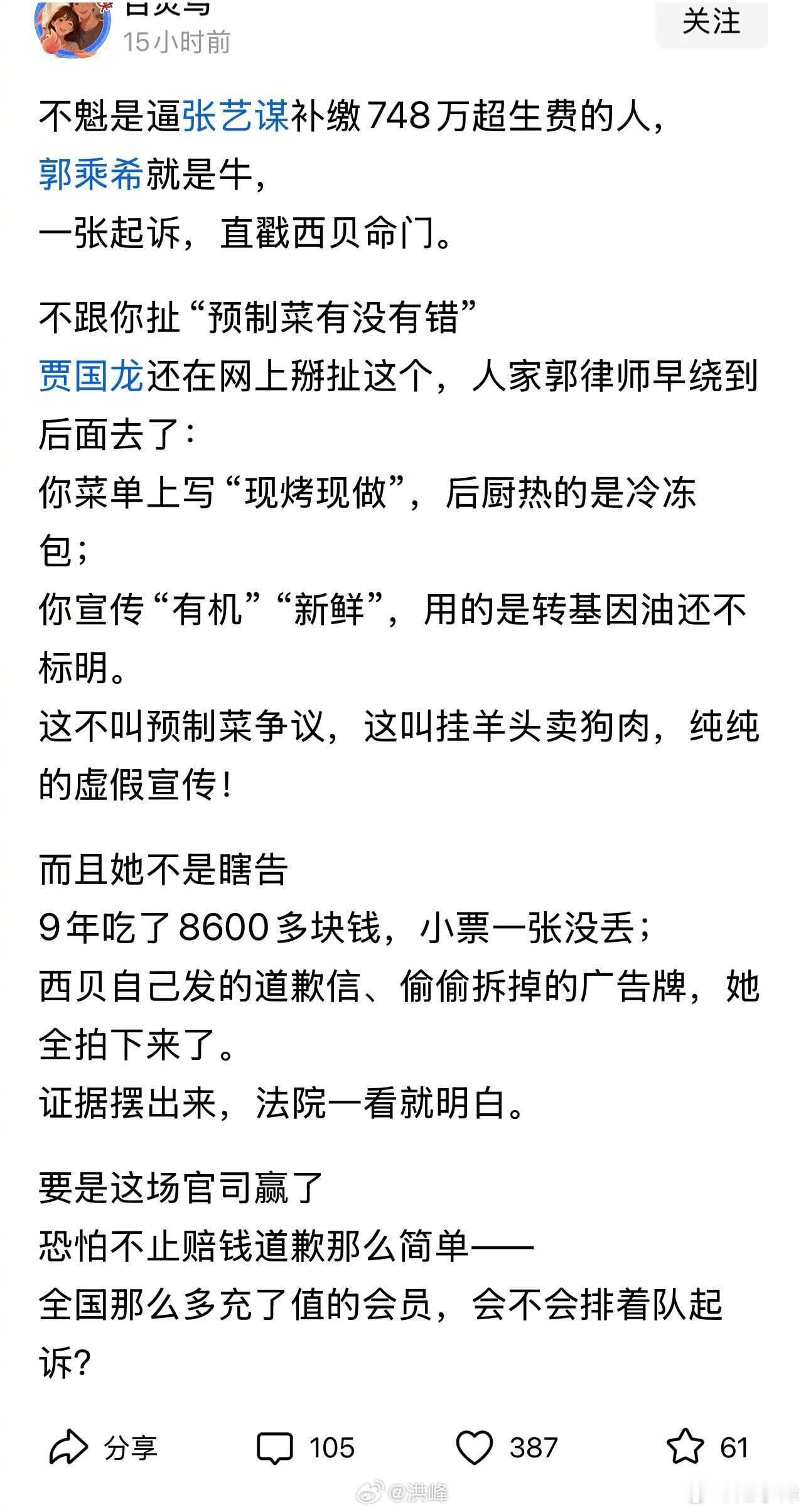 郭乘希就是牛,一张起诉,直戳西贝命门。