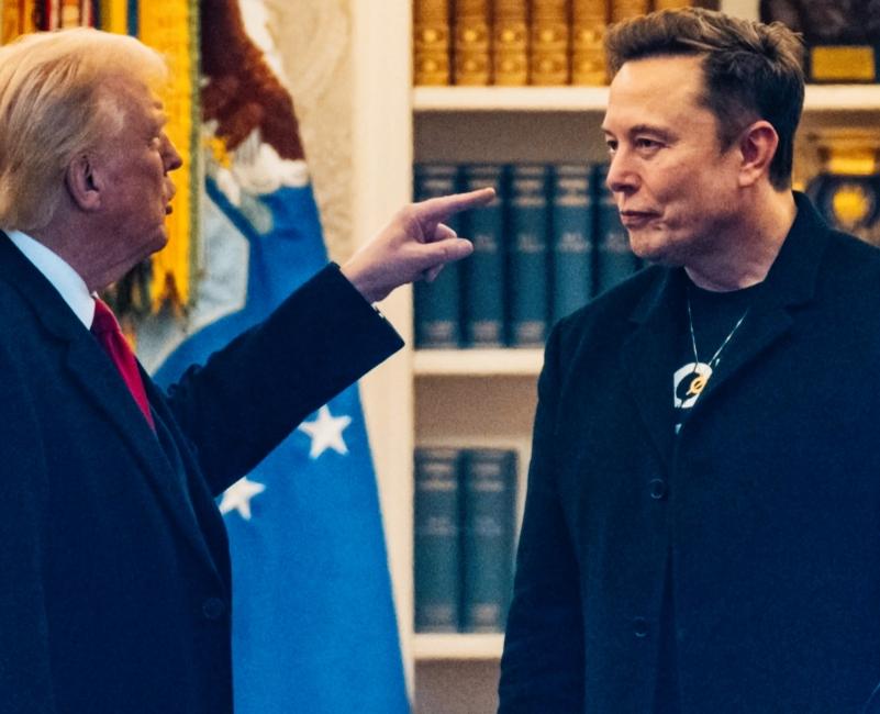 特朗普这是马斯克是不是完美诠释了商人之间的关系啊! 两人之间的关系这是时而阴时而晴啊! 商人之间的关系是不是只看到了利益啊? 特朗普用手指着马斯克时,马斯克在想什么呢?
