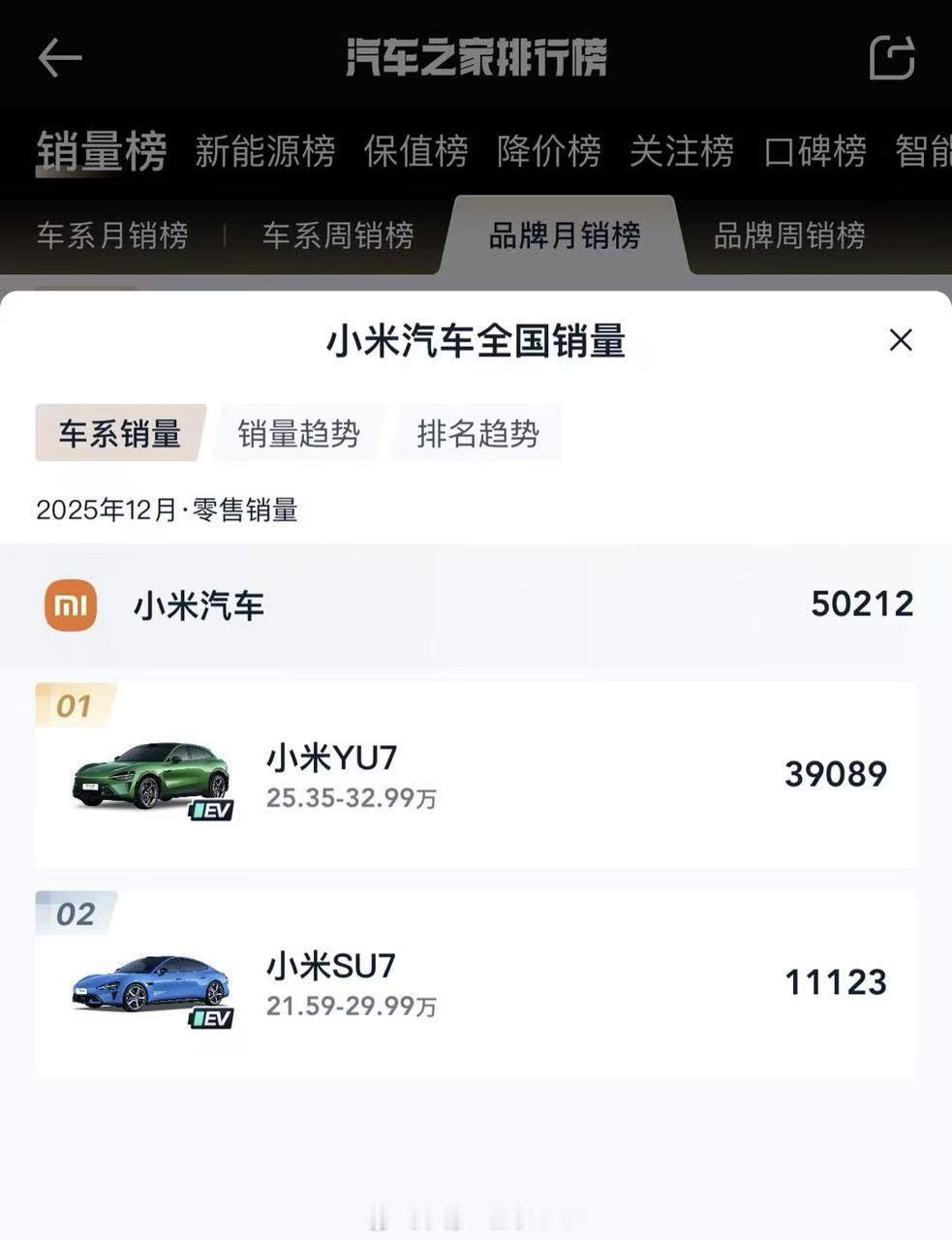 所以1月这个3.9万辆几乎就都是YU7的量,一台车一个月交付3.9万,你还能在这个市场找出第二台吗?