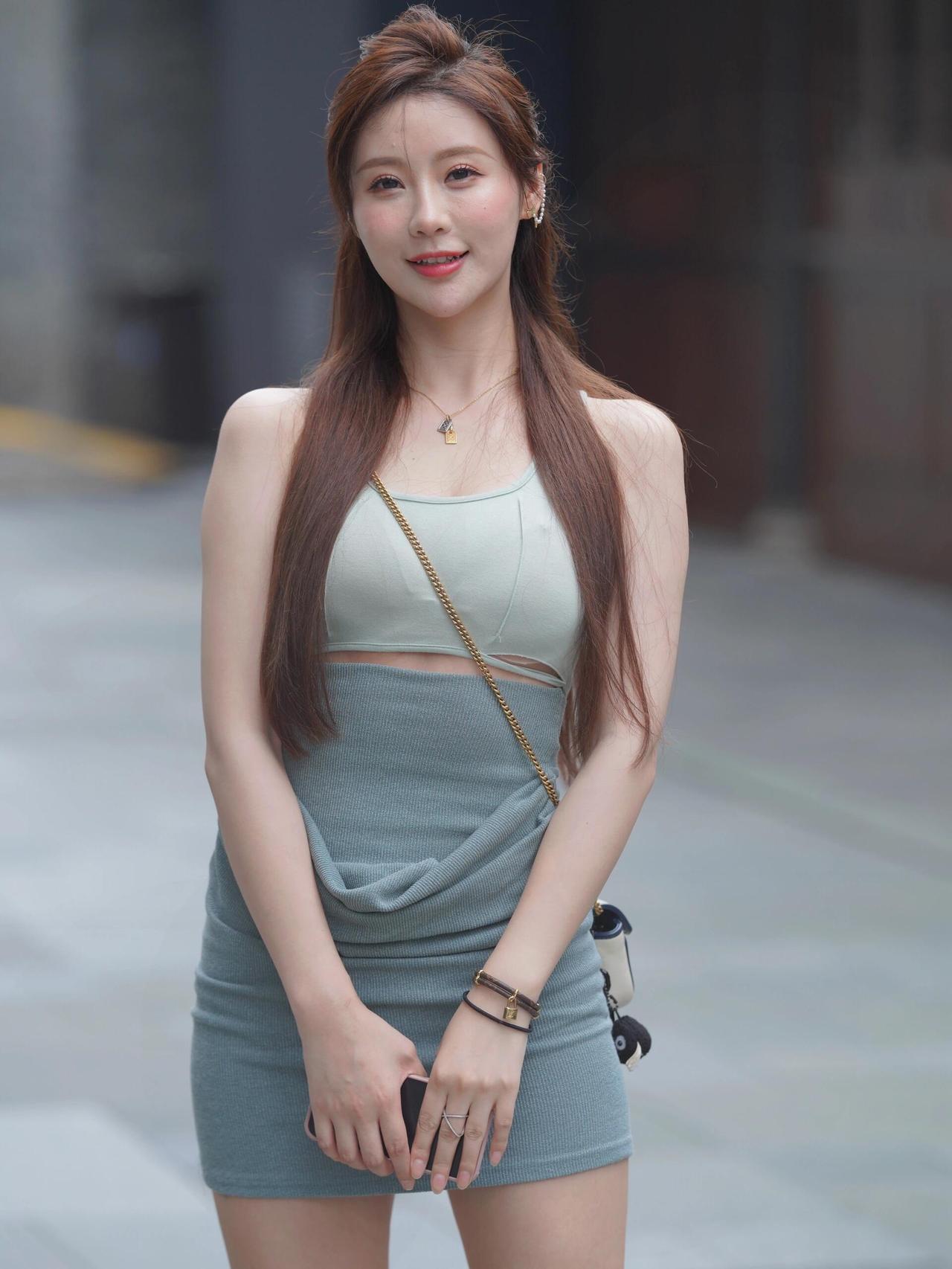清冷纯欲裙”这套“清冷+纯欲”穿搭真的赢很大~浅豆绿吊带裙绝了!上半部分贴身设计