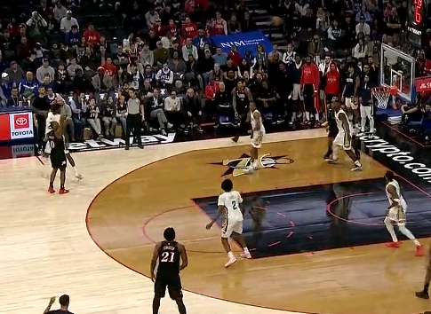 比赛的第四节,马克西关键时刻干拔三分命中,比赛剩1分钟76人领先6分。