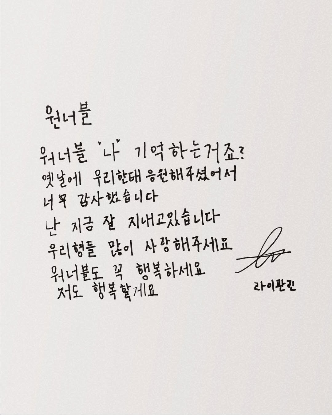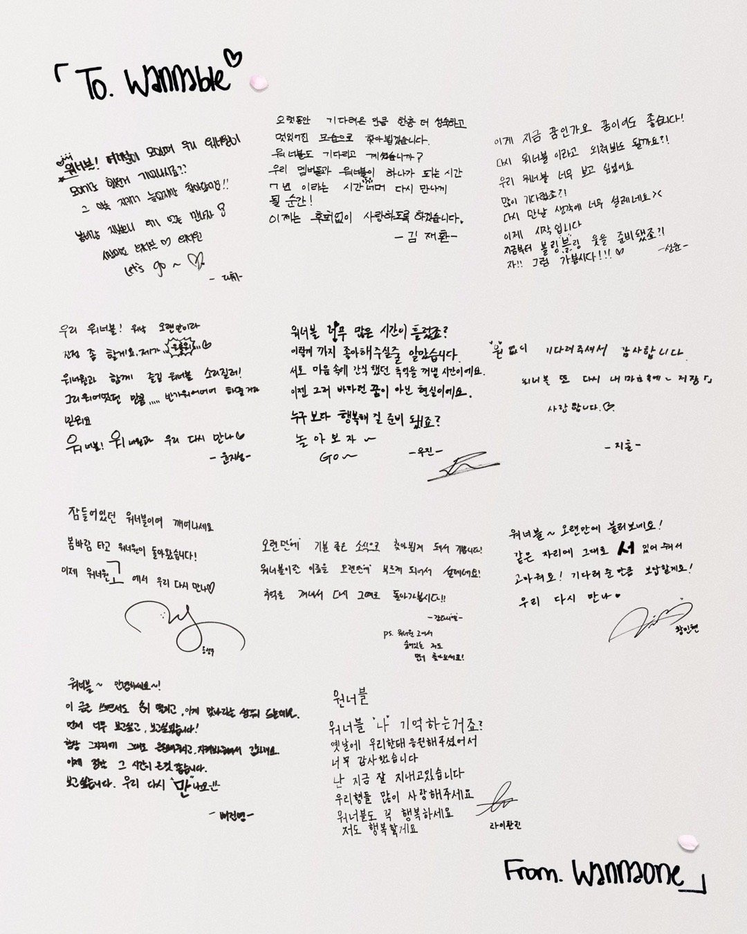 WANNAONE全员手写信赖冠霖WANNAONE手写信WANNAONE更新出道9周年全员手写信!