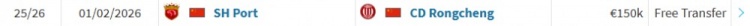 直播吧2月1日讯根据德转信息,上海海港球员亚历斯祖免签加盟成都蓉城。