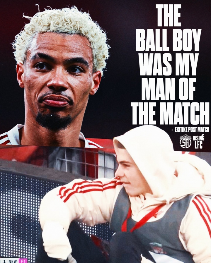 埃基蒂克赛后称赞:“必须好好夸夸球童,他就是本场最佳。我们就需要这样快速把球交回赛场,我们并肩作战的不仅是球迷,而是所有人,球童也不例外。”