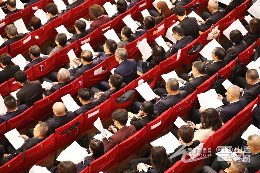 图为委员们认真听取政协山西省委员会常务委员会工作报告。