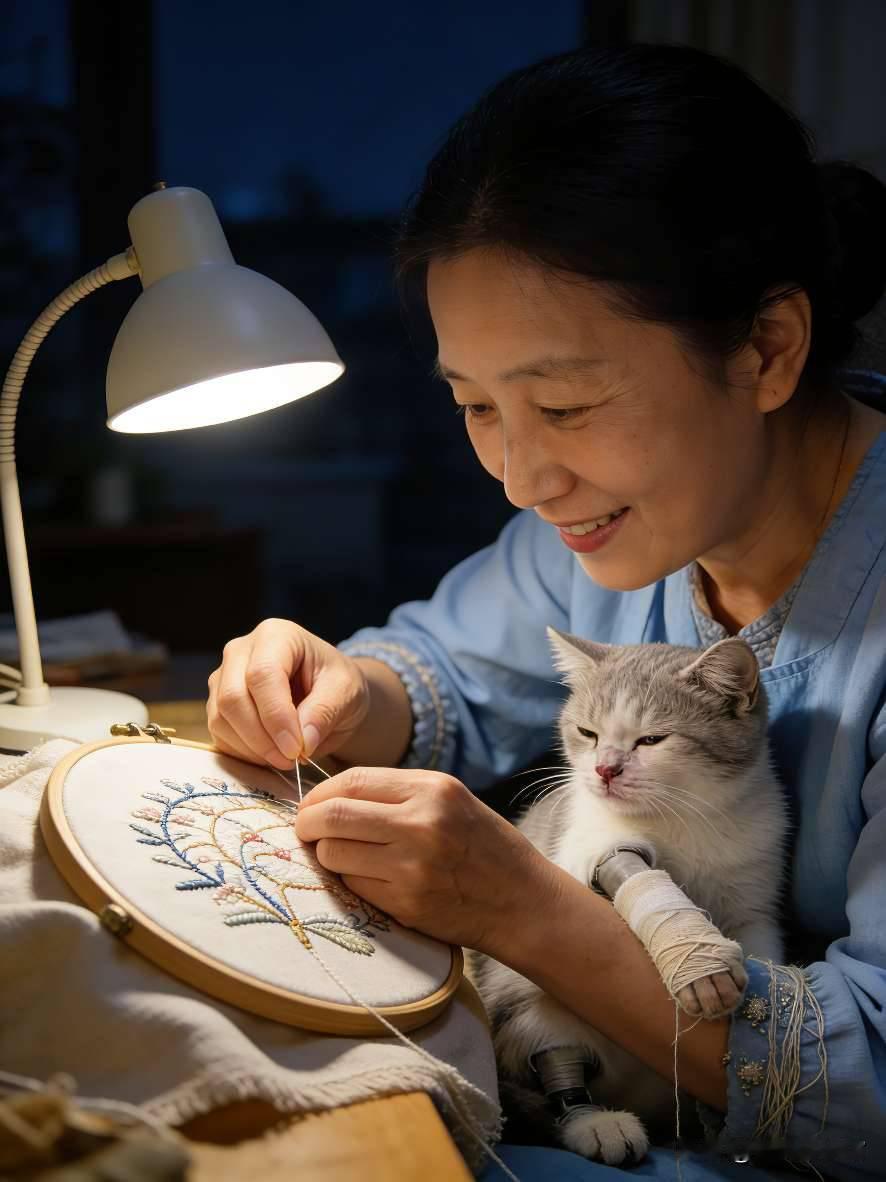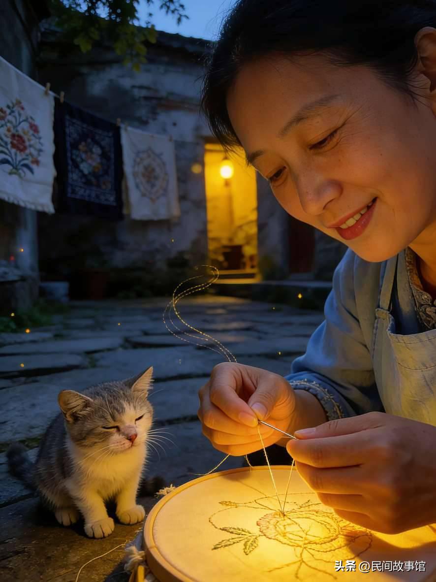 独居绣娘捡回一只瘸腿弃猫,夜里熬夜刺绣,竟有人帮她穿针引线,点灯一看,身边哪里是人! 这事源自江苏苏州的绣娘传说,清末绣娘苏巧儿,手艺精湛却孤身一人。那天她在巷口发现一只瘸腿小猫,浑身脏兮兮的,眼神可怜,就带回家收养,取名“雪儿”。巧儿每天刺绣到深夜,雪儿总在旁边陪着。有天夜里,她绣到困乏,迷迷糊糊中感觉有人帮她穿针,还帮她绣最难的牡丹纹样。她以为是邻居姐姐,随口说了句“多谢”,却没听见回应。她点灯一看,吓得针线都掉了,只见雪儿蹲在绣架旁,两只前爪正按着丝线,眼神竟透着人的灵气。从那以后,雪儿每天夜里都帮她刺绣,巧儿的绣品越来越精致,成了当地有名的绣娘。后来雪儿老了,寿终正寝,巧儿把它埋在院中的桂花树下,从此绣品上的牡丹,总比别人的多一分灵气。 有人说雪儿是前世欠巧儿的,转世成猫来报恩,你信动物转世报恩吗?巧儿后来的绣品为啥能成一绝民间故事 猫仙报恩 绣娘奇遇 真实民间传说