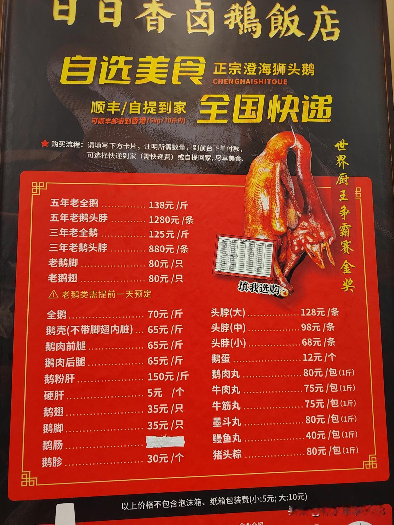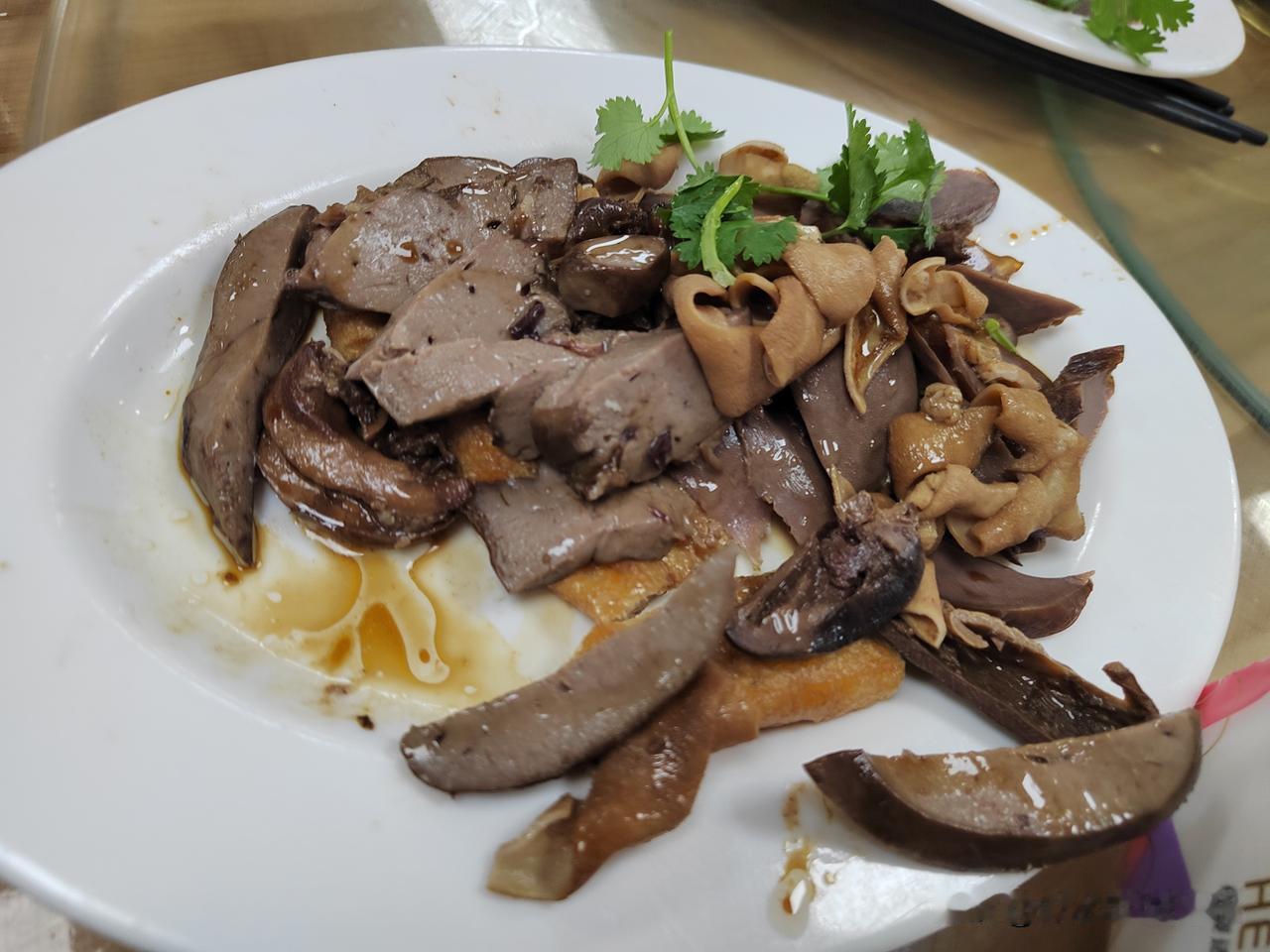 南京-潮汕五天四晚跟团游D2-3 今天中午导游带我们到澄海区中心城区日日香卤鹅饭店澄海总店吃卤鹅团餐。整个团队分坐四桌,团餐八菜一汤一饭。有卤鹅肉、卤鹅头、卤鹅颈、卤鹅翅、卤鹅肝、卤鹅肠、卤鹅肫、卤鹅蛋、鹅血、油豆腐等卤味,还有海鱼、苦瓜煲、炒包菜、汤等。 卤鹅餐是潮汕地区的特色餐,今天的团队餐安排品尝了潮汕地区的特色卤鹅餐,非常的不错,味道很好。