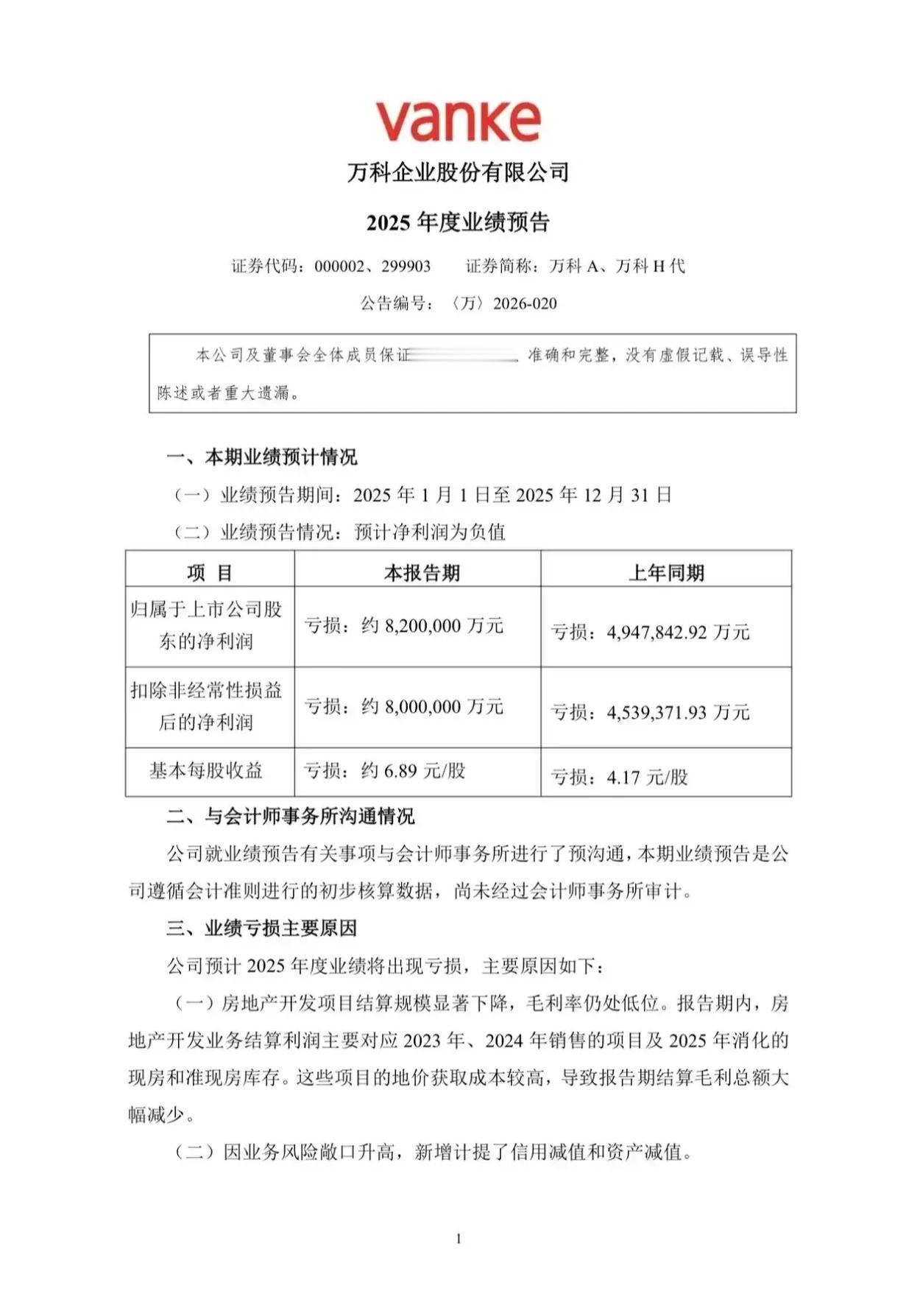 万科的2025年业绩出来了,真的房地产的噩梦啊万科2025年净利润亏损了820