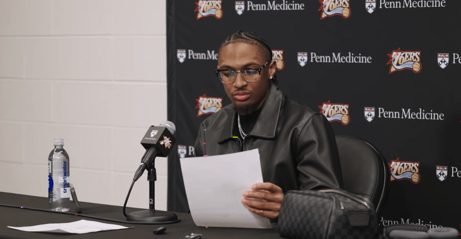 记者:今晚现场致敬了01届那支球队,艾弗森也来到了现场。看到全场观众的欢呼,以及乔尔在主场观众面前砍下40分的顶级表现,当你想起自己想在费城留下怎样的长期精神遗产时,脑海中会浮现什么?