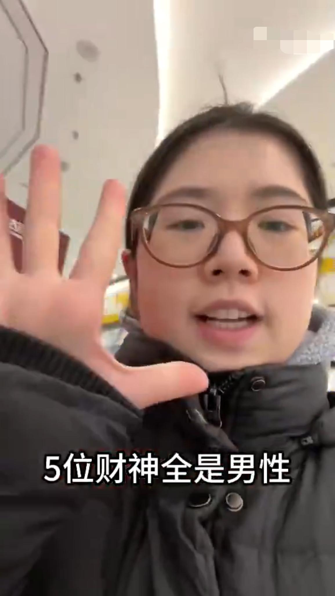 有一位女子逛商场时,发现广告牌上的财神竟然全都是男性,没有女性财神,这令她非常不舒服。 她表示:“我刚刚在商场这边,发现了一个广告牌,这个广告牌令我特别不舒服的一个点是,这个广告牌上的‘财神来了’,5位财神全是男性,全是有胡子的男性,没有一个女性财神,我们的财神姥呢???嗯???”