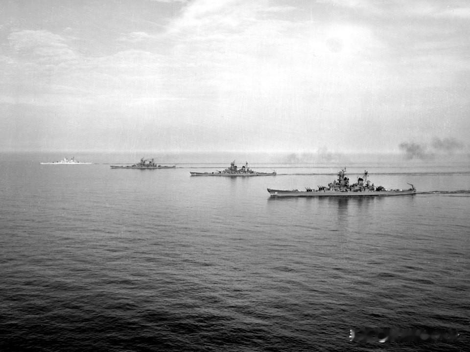 衣阿华级战列舰唯一一次齐聚! 这张照片拍摄于1954年6月7日,地点是弗吉尼亚icon海角作战区域,画面中由近及远分别是衣阿华号(BB-61)、威斯康星号(BB-64)、密苏里号(BB-63)和新泽西号(BB-62)。1954年6月上旬,作为第40.1特混舰队的成员密苏里号与其他姊妹舰短暂会合,并进行了演习!