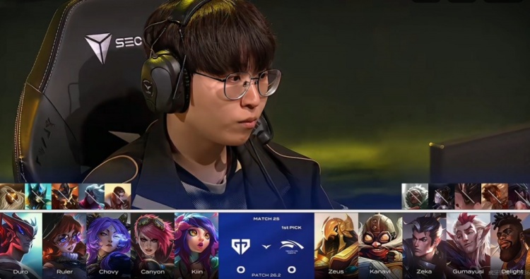 GEN:上单Kiin、打野Canyon、中单Chovy、下路Ruler、辅助Duro