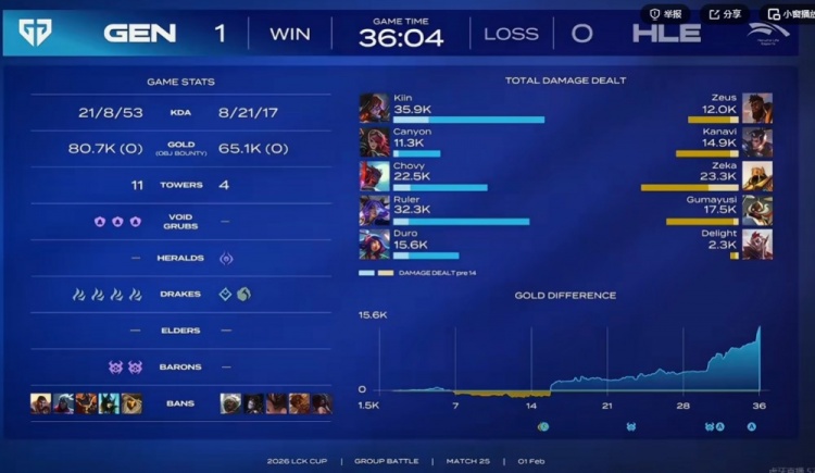 直播吧2月1日讯2026年LCK杯来到超级周,今天的比赛将会是一场事关多队生死的对局,GEN对阵HLE!