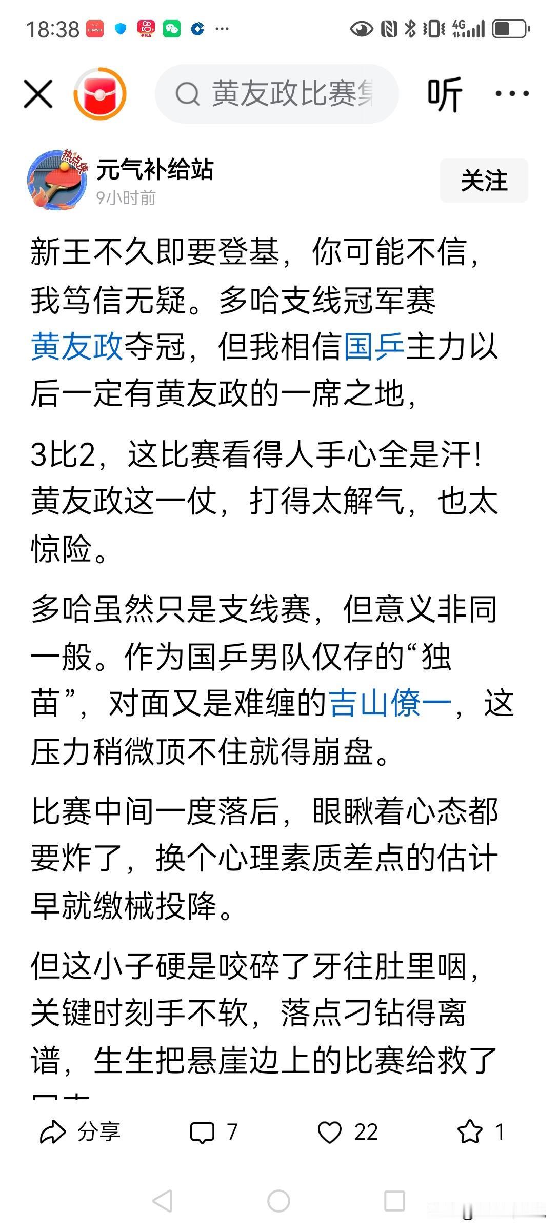 黄友政新王就要登基了吗? 黄友政多哈支线赛男单夺冠确实值得表扬,但仅凭这个冠军,就有网友说“新王登基”是不是为时尚早了点?虽然万事开头难,有一就有二,但125积分的男单冠军,只是最低级别的WTT赛事而已,国乒主力缺席不说,就连外协主力也不在现场,只能说明这个赛事黄友政发挥不错,还得下一个,下下一个,下下下一个……赛事再检验。不求每个赛事都夺冠,但也不能每个赛事都一轮游两轮游就行,不吹不捧,黄友政加油就好!