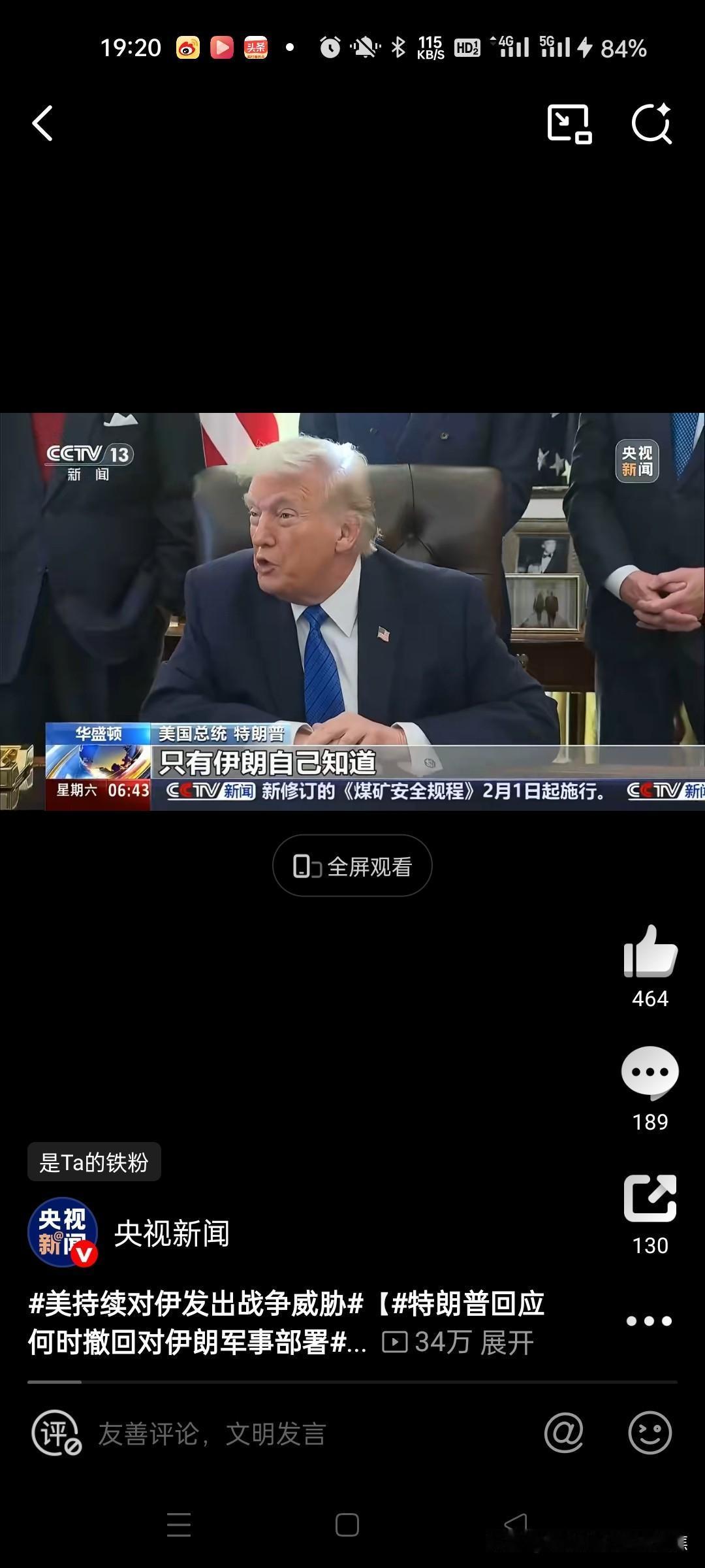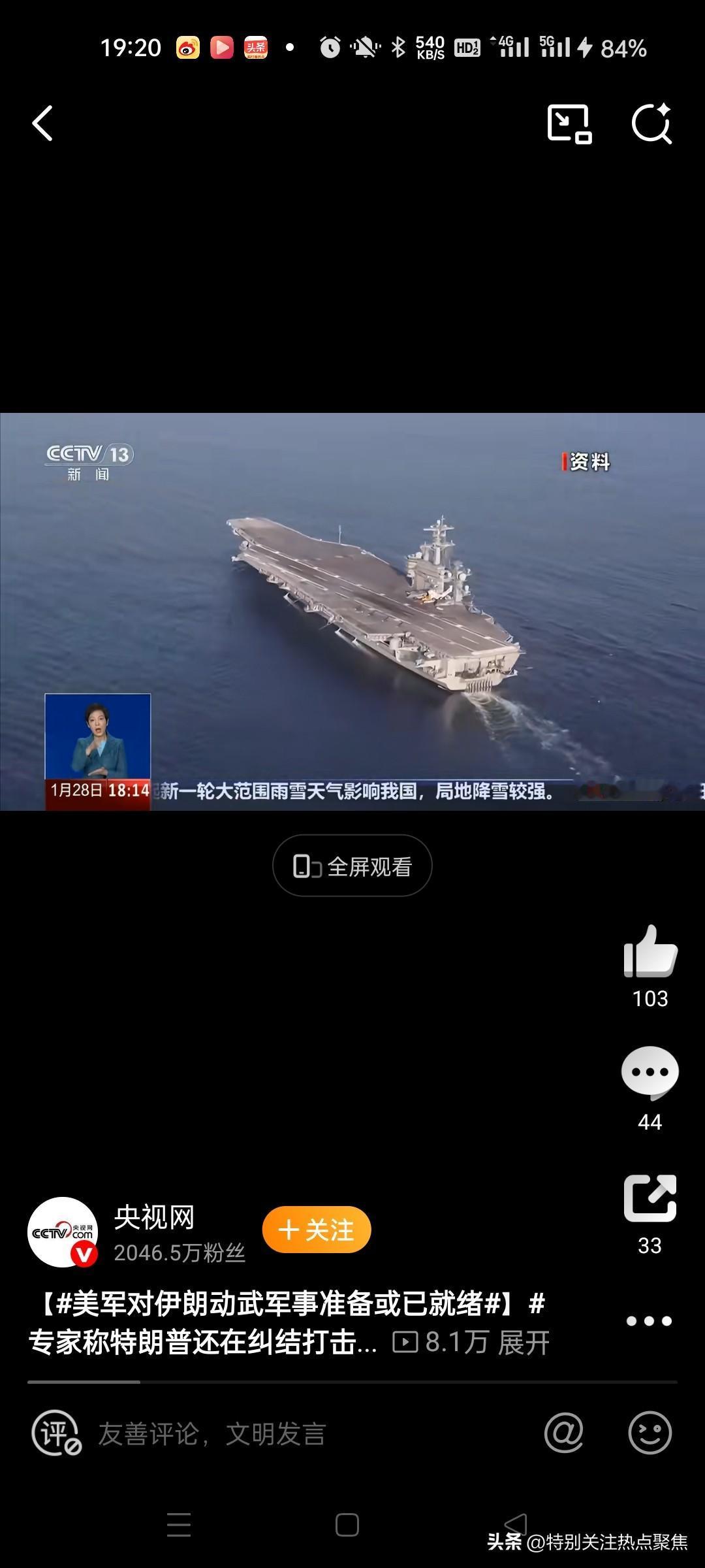 箭在弦上:美媒曝特朗普将很快下令攻击伊朗 当前,美伊紧张局势持续加剧,美军航母打击群等军事部署已然就绪。有消息称,特朗普可能在未来几天内决定是否对伊朗发动军事打击。 一、美方动态:军事准备就绪,决策进入倒计时 军事部署完成 美军“亚伯拉罕·林肯”号航母打击群已进入中东水域,并完成作战位置部署,周边基地也同步完善。同时,美国向中东增派了F - 15战机、防空系统(如“爱国者”和“萨德”)及多艘驱逐舰、濒海战斗舰,形成自去年6月袭击伊朗核设施以来最大规模的军事集结。专家分析指出,美军在技术层面已具备对伊动武条件,可选择的打击手段包括远程轰炸、海上封锁、空袭核设施或政府目标等。@央视网710 决策时间窗口逼近 据美以高级官员透露,特朗普可能在美军全部部署到位后“数日内”下达最终指令。以色列媒体进一步称,袭击最早可能在本周末(1月31日左右)启动,目标锁定伊朗核设施、导弹项目及革命卫队高层。不过,特朗普本人对行动仍有顾虑,主要纠结于“打击性价比”,倾向效仿对委内瑞拉的速战模式(如2025年6月空袭伊朗核设施),试图以最小成本迫使伊朗屈服。@北京日报513央视网央视新闻北京日报北京日报 二、特朗普的谈判施压与核心诉求 威胁与谈判并行 特朗普多次通过社交媒体和公开讲话向伊朗施压,要求其“立刻重返谈判桌”,并警告若拒绝谈判,美方将发动“比去年夏天更猛烈”的打击。他宣称已通过中间渠道与伊朗接触,但未设定协议最后期限,仅表示时间紧迫。@央视新闻12 两项核心要求 美方向伊朗明确提出的条件包括: 放弃核武器开发:要求伊朗永久停止铀浓缩活动; 停止镇压国内抗议:指责伊朗政府“杀害示威者”,要求其改变行为。 伊朗方面则回应称,在美国持续军事威胁下难以信任谈判诚意,且“经济利益未获保证前不会谈判”。@直新闻1920央视网央视新闻 三、伊朗应对:全面备战与威慑反击 军事反制准备 伊朗宣称导弹已装载至发射架,进入“200%自卫状态”,并警告若遭攻击将“立即打击以色列心脏地带及波斯湾美军目标”。军方强调已掌握敌方作战计划,波斯湾美军基地“均在导弹射程内”,并拥有上千架战备无人机。@荆楚网421 国内紧急状态 伊朗总统宣布启动全国紧急状态,授权地方政府在战时自主决策,保障物资供应和政府运转,同时德黑兰市加速改造地下设施为战时避难所。1928头条新闻 四、国际反应与冲突风险 地区国家斡旋与担忧 沙特、土耳其、卡塔尔等国正积极斡旋,反对美国动武。沙特向美伊传递信息呼吁缓和局势,土耳其提议举行三方会谈。海湾国家明确拒绝本国领土或领海被用于攻击伊朗,避免卷入报复漩涡。@风闻社区 潜在冲突后果 专家分析指出,美伊双方均面临两难: 美国若发动小规模打击难以震慑伊朗,而大规模行动可能引发伊朗全面反击,导致地区长期冲突,甚至冲击全球油价(如伊朗封锁霍尔木兹海峡);@北京时间3 伊朗若反击力度不足恐削弱国内威信,过度反击则可能遭致更猛烈报复。 当前谈判被视作“未战状态的过渡选项”,但若双方无法妥协且国际调停失败,爆发局部战争的风险仍然高企。@红星新闻324央视网 美国对伊朗开战 伊朗怒批美国 美国要打伊朗 伊朗怒怼美国 伊朗果断行动 伊朗亮剑出击 美军空袭伊朗