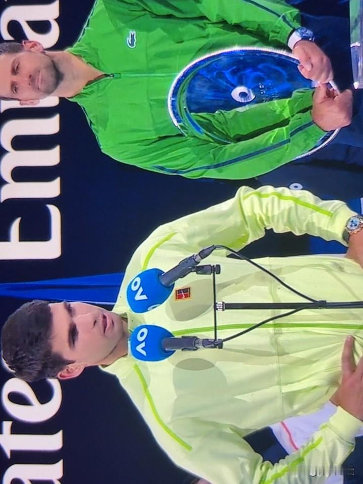 🎉第九位网球全满贯成员👉阿尔卡拉斯🔥🔥 刚刚🔚的澳网男单决赛,22岁的阿尔卡拉斯3 - 1逆转38岁的德约科维奇首夺澳网冠军,成就了公开赛时代最年轻的男单全满贯得主和大满贯7冠王,独揽约2008万人民币奖金,稳稳坐着世界第一宝座。 赛前两人都经历残酷五盘大战,体能受限。比赛开始德约凭经验先声夺人,阿尔卡拉斯迅速调整战术扳平!后面阿尔卡拉斯跑动、进攻超强,第三盘顶住压力破发反超,第四盘关键破发最终夺冠。 皇马也发文祝贺称以他为荣!阿尔卡拉斯未来可期啊! 澳网网球 德约澳网 澳网十冠神话