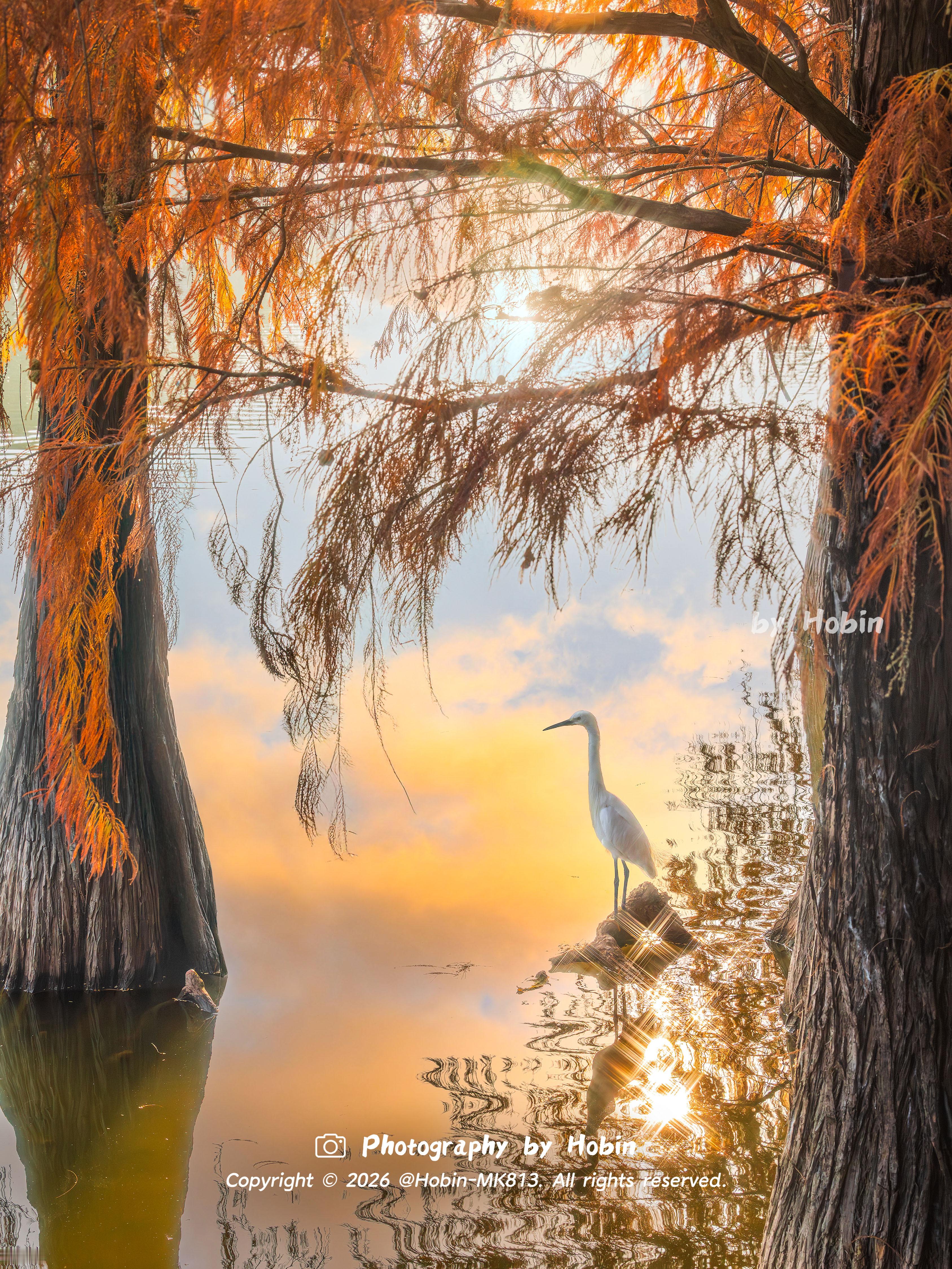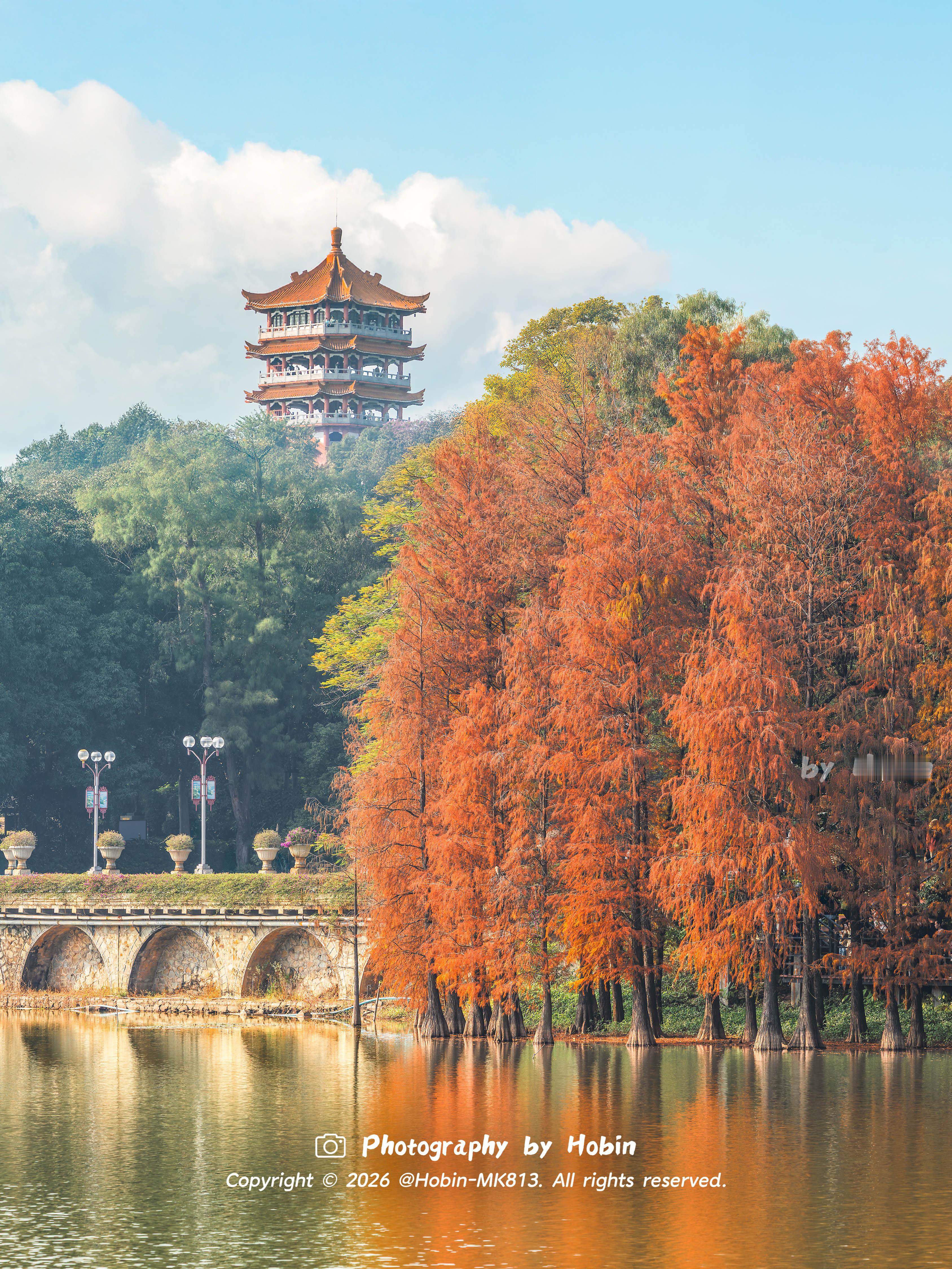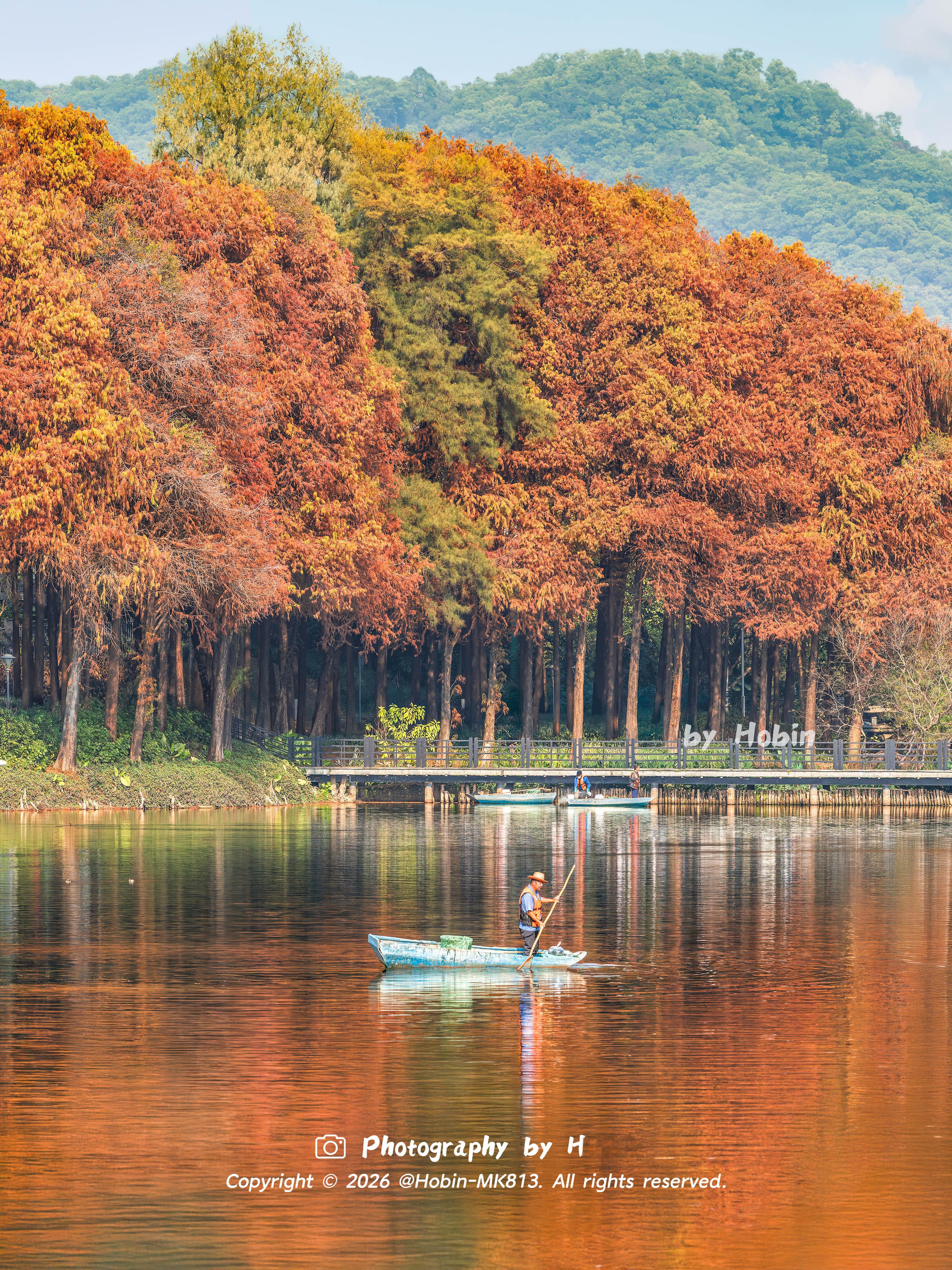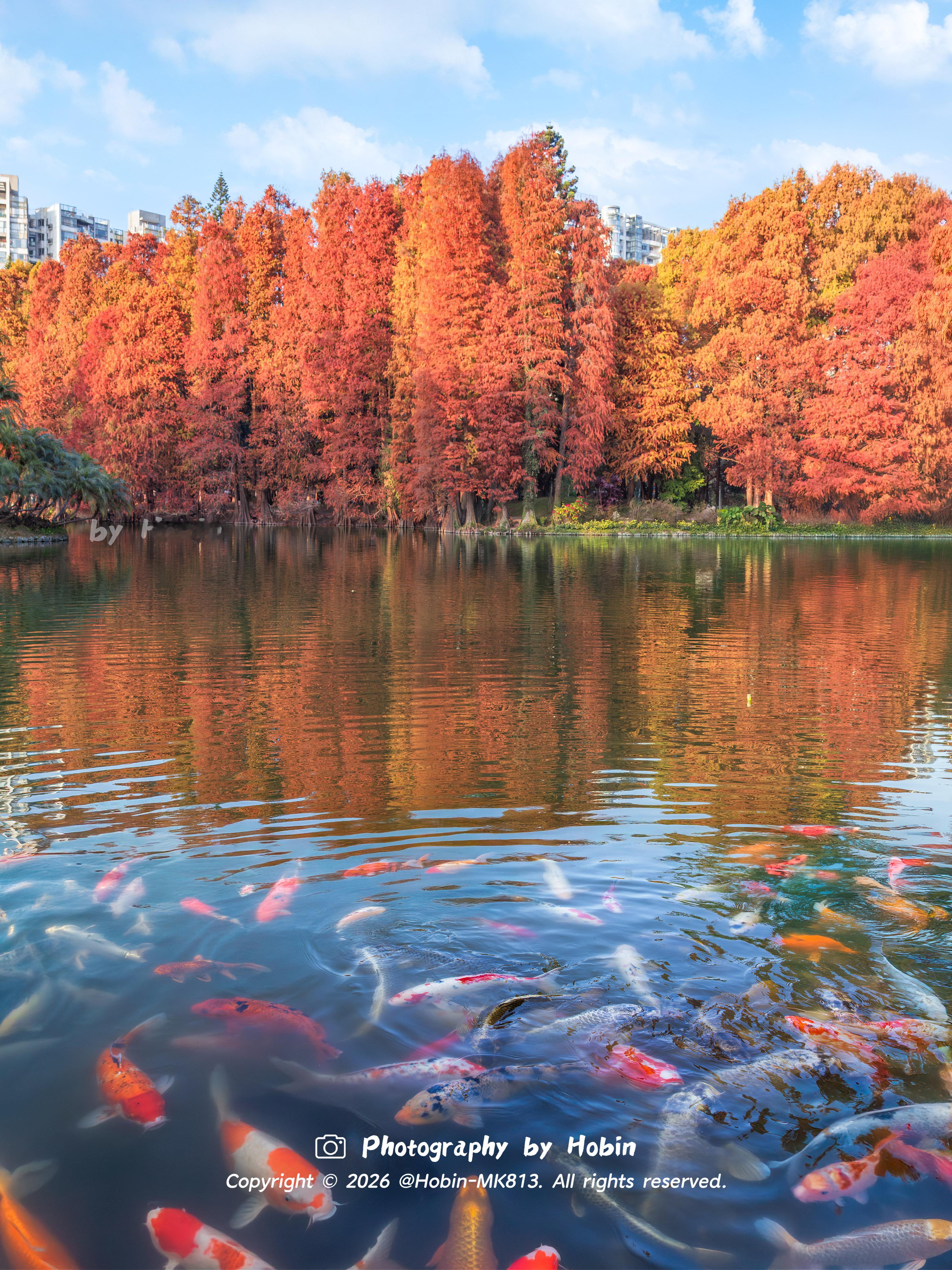 广州冬天如焦糖色的油画🧡落羽杉与碧波相融,宛如调色盘倾洒,定格成治愈的静谧诗画