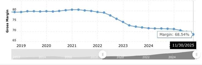 从财务数据看,AIGPU采购已明显侵蚀甲骨文的盈利能力。据EdZitron分析,公司毛利率从2021年的约79%滑落至2025年的68.54%,有分析师预计到2030年可能进一步降至49%。资本支出从2022财年前的每年10亿至20亿美元,飙升至2025财年的212.5亿美元。但净利润十多年来一直在20亿至30亿美元间徘徊,并未因AI投资改善。