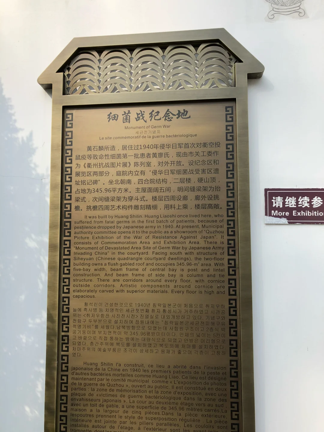 图片拍摄于浙江衢州日军细菌战纪念馆 1940年10月4日,日军731部队等对衢州空投鼠疫杆菌带菌跳蚤,开启南方大规模细菌战;1940—1948年间,鼠疫、伤寒、炭疽等疫病大流行,累计约5万同胞死亡,衢州是全国细菌战受害最重地区之一。