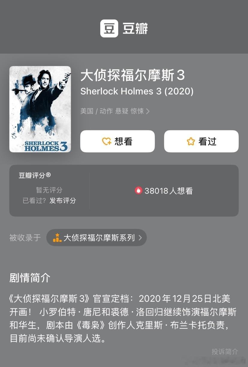 啊?内部知情人士透露《大侦探福尔摩斯3》已经重启制作了,小罗伯特唐尼会回归继续饰演夏洛克福尔摩斯。。