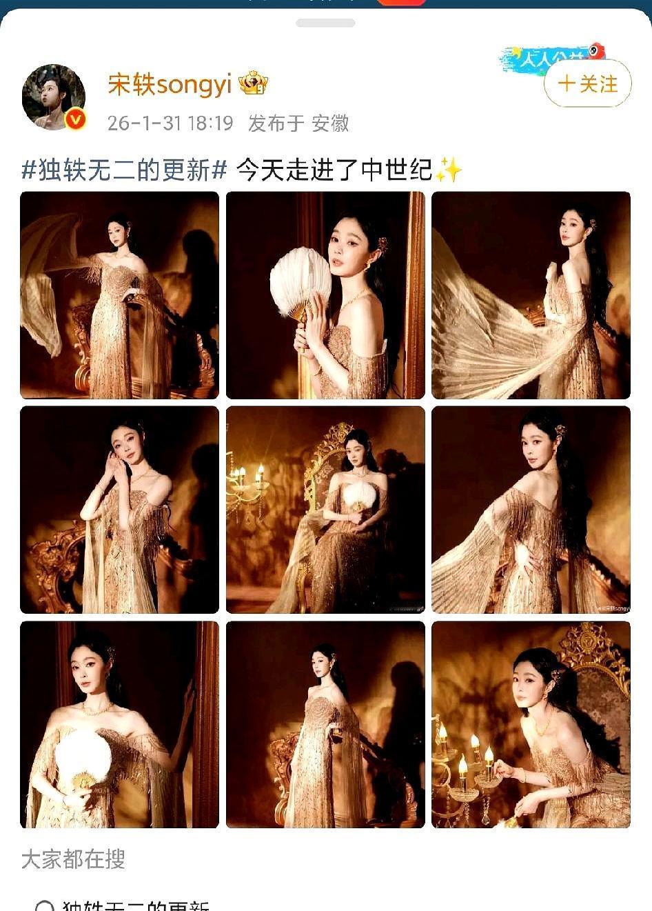 合肥商场被挤爆,就为看宋轶一眼。 人墙里三层外三层,手机举过头顶。宋轶一露面,全场倒吸一口凉气,只剩下一片“哇”。 一身鎏金抹胸裙,没用一点多余布料。肩颈线条直接亮出来,人一走动,碎光就在裙摆上流淌,像把银河穿在了身上。 手里一把白羽扇,一个背影,一个回眸。就这个动作,直接把热搜干上去了。换做是你,站在台下,你能忍住不喊出声吗? 她自己发文,说“走进了中世纪”。可懂行的一看,这明明是新中式风骨。这种反差感,拿捏得死死的。 高级感不是穿金戴银,是把金银穿成风骨。