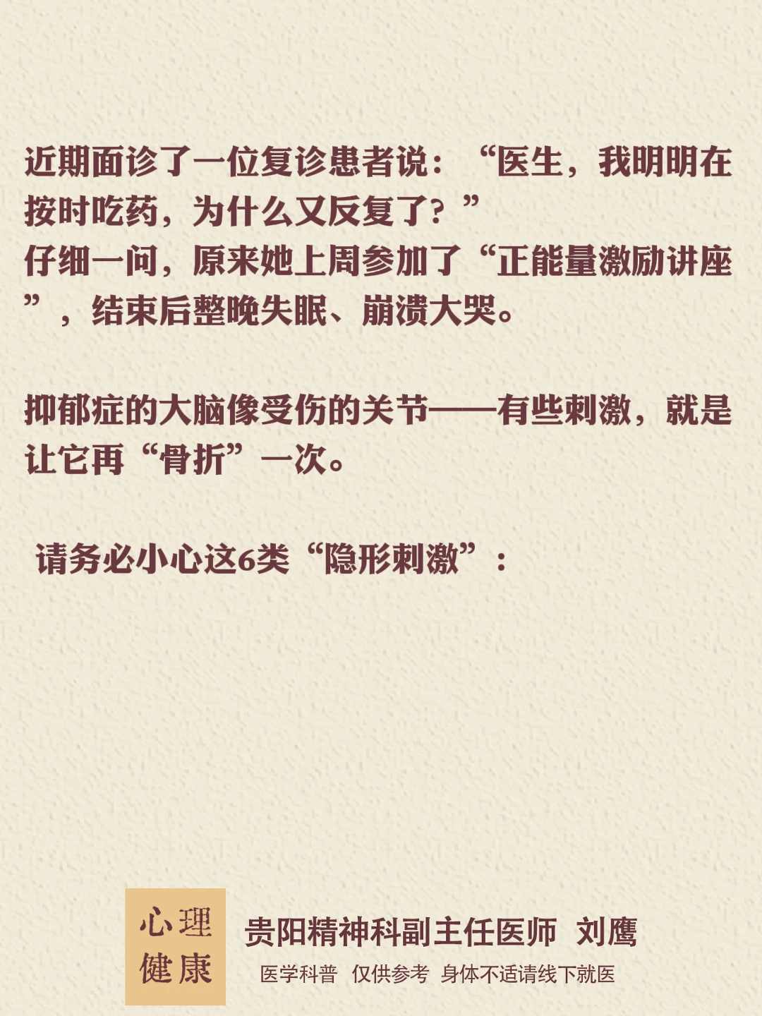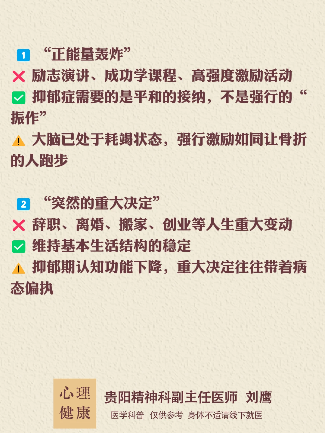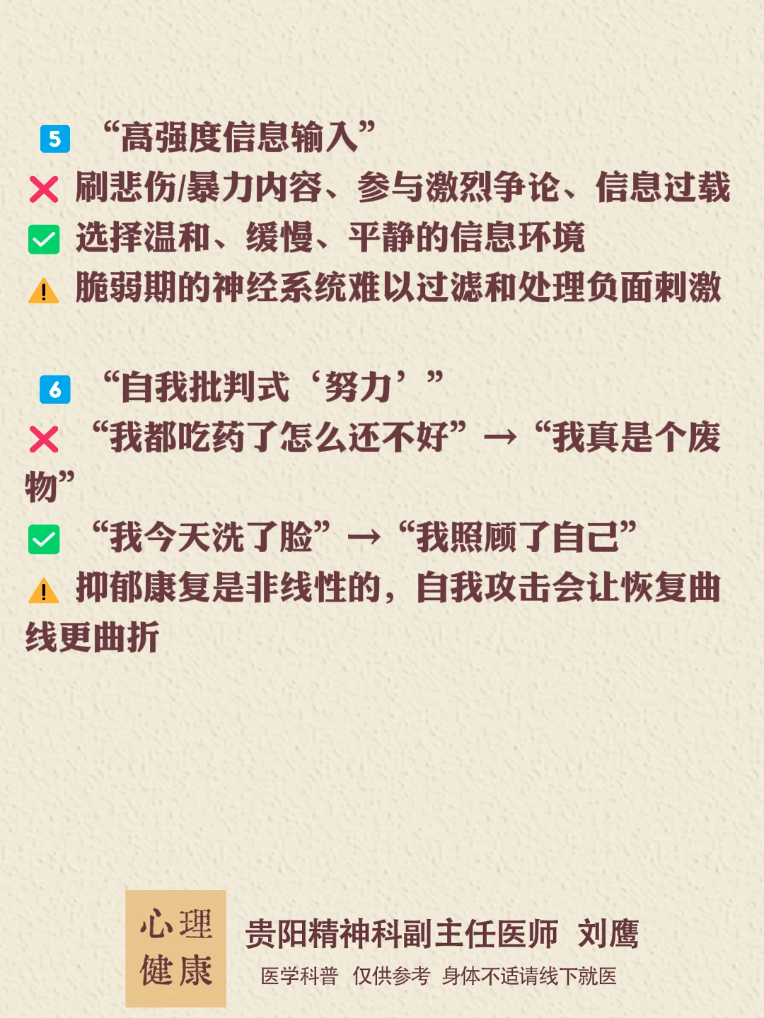 康复期的抑郁大脑,就像手术后正在愈合的伤口—— 它需要的不是励志,而是无菌环境(稳定)、适当营养(药物+心理治疗)、和温柔的包扎(社会支持)。 如果你正在经历复发: 这不是失败,这只是提醒——我们的“情绪免疫系统”还需要更多保护。 今天,请为自己做一件小事: 关掉一个让你焦虑的群聊 拒绝一个消耗能量的请求 或者,只是安静地发呆五分钟 保护自己当下的感受,不是自私,是康复的必须步骤。