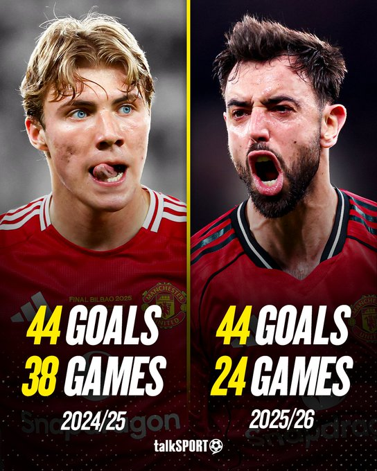 据统计,曼联在少14场比赛的情况下追平了上赛季的英超进球数。本赛季24场44球,上赛季38场也只打进了44球。