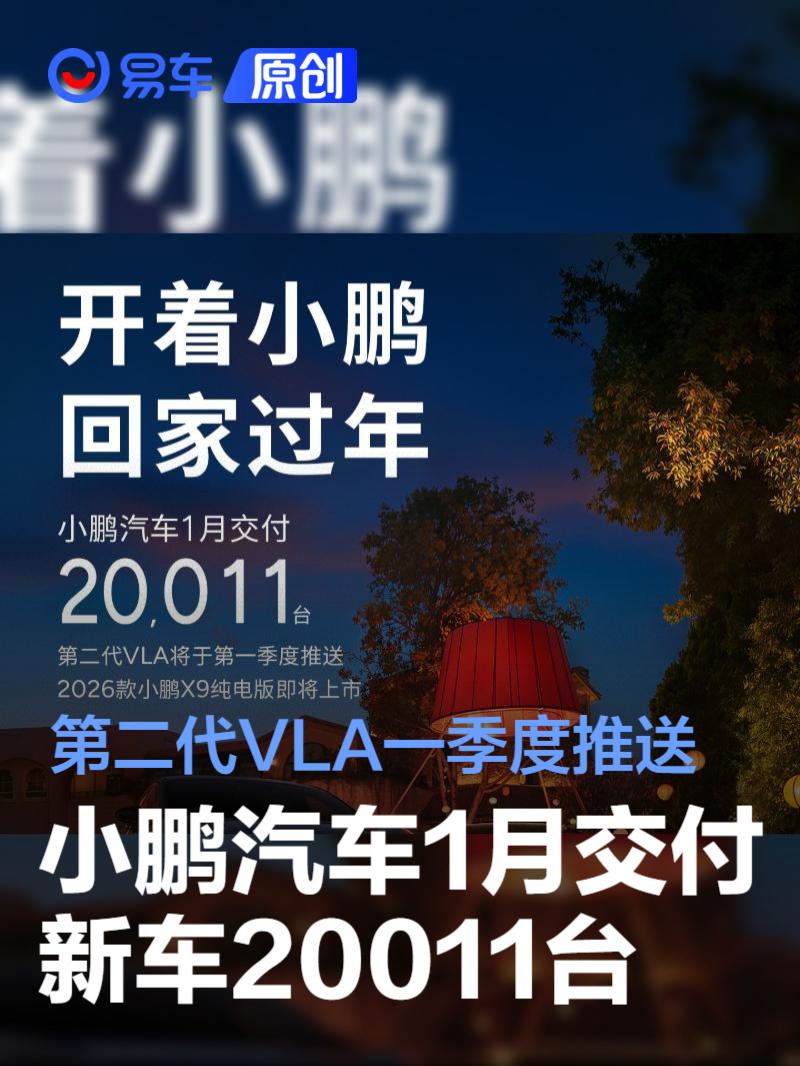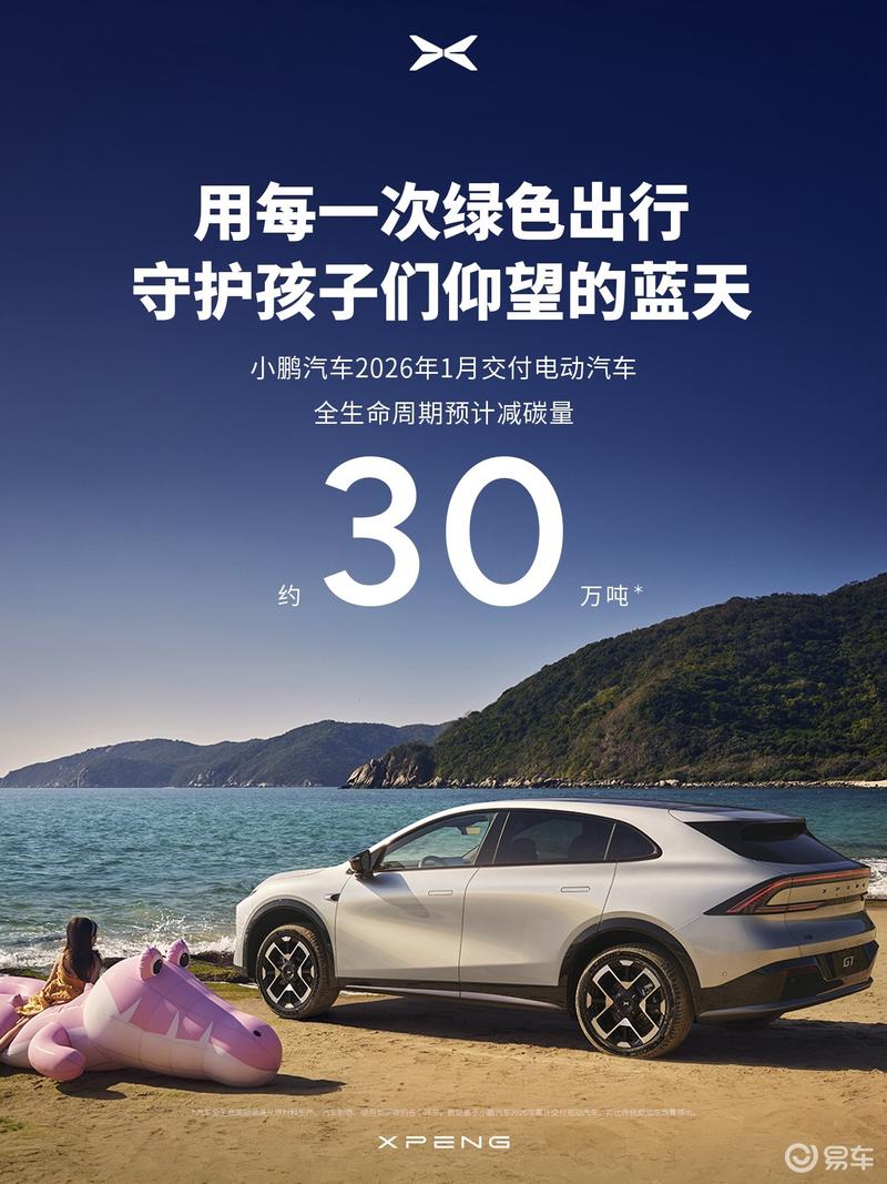 易车讯2月1日,小鹏汽车公布最新交付数据。2026年1月小鹏汽车共交付新车20011台。同期交付车辆,相较于传统燃油车型,全生命周期预计可减少碳排放约30万吨,相当于494万棵中等树苗10年的固碳量。