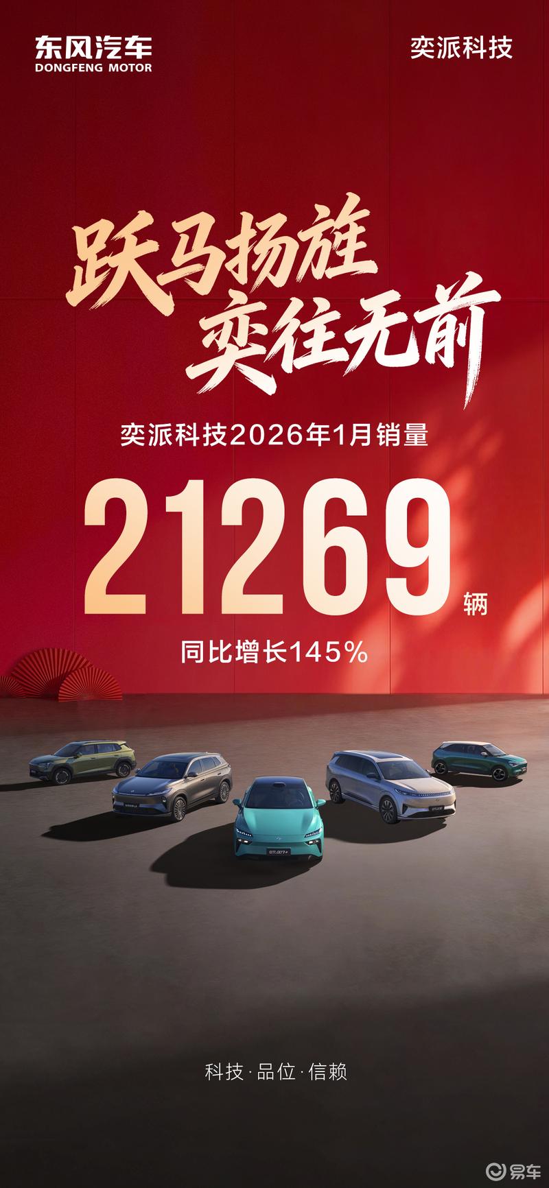 易车讯2月1日,奕派科技公布最新销量数据,2026年1月,奕派科技累计销量21269辆,同比增长145%。