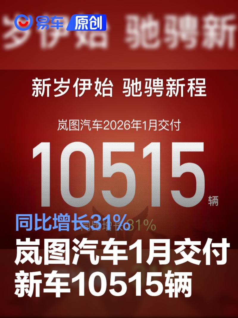 易车讯2月1日,岚图汽车公布最新销量数据,2026年1月,岚图汽车交付新车10515辆,1月销量连续三年连升,同比增长31%。