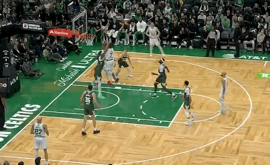 比赛的第二节,杰伦-布朗上篮打进,凯尔特人领先雄鹿到14分分差。