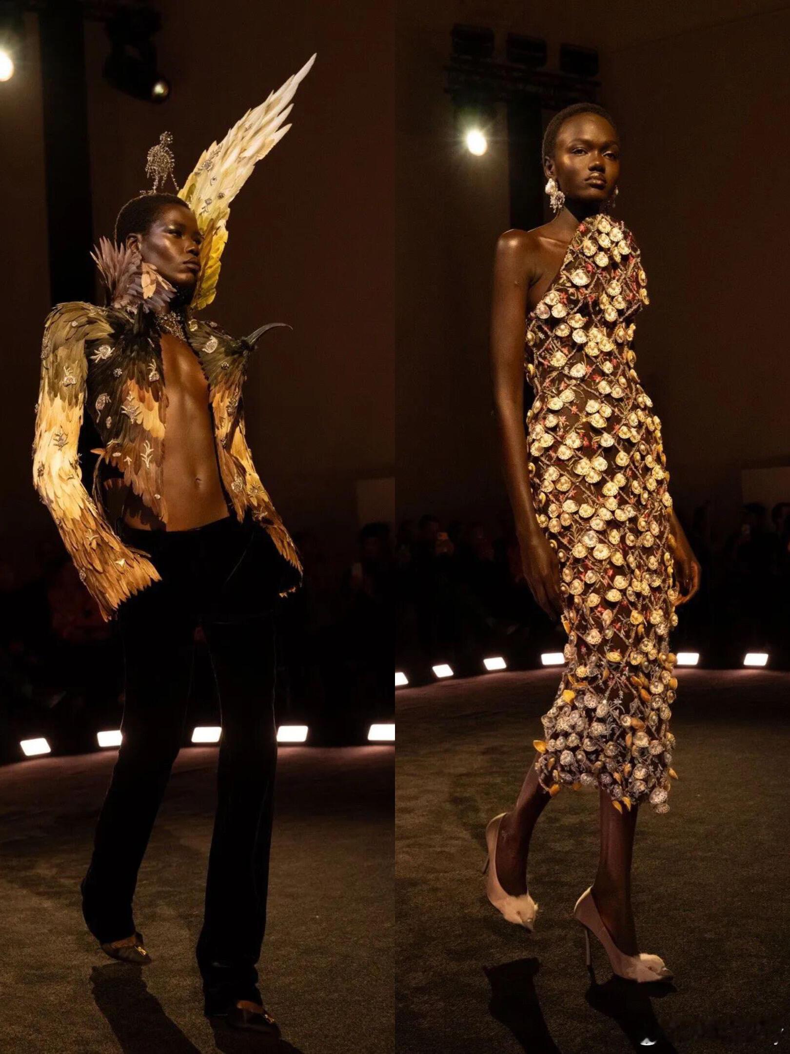 巴黎高定时装周大秀直击 Schiaparelli 2026春夏高定撕碎高定“高高在上、完美无瑕”的陈旧标签,以痛苦与狂喜为命题,开启一场危险与优雅共生的时尚革命。蛇、鳄鱼、蝎子、河豚的危险符号被嵌入古典公主裙轮廓,蕾丝与马鬃衬的优雅肌理之上,突兀生长出黑色浮雕般的蝎尾,将攻击性美学转译为女性对凝视的强势反击。这里的公主不再怯懦逃亡,进化出致命蛰针,用带刺的美丽宣告自我主权。65000根丝线以缎面针迹手工刺绣,模拟自然拟态,将求生的本能化作造梦的技艺,雕琢出现实中不存在的奇幻生物。天堂鸟的绮丽羽色贯穿全场,树脂鸟首、丝绸羽毛、珍珠眼眸构筑雕塑感配饰,标志性鸟头高跟鞋惊艳亮相,精致与可怖、脆弱与强大在此完美交融,重新定义高定的边界与力量。