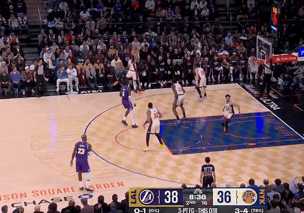 虎扑02月02日讯NBA常规赛,湖人对阵尼克斯的比赛正在进行中。
