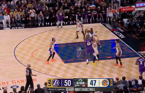 虎扑02月02日讯NBA常规赛,湖人对阵尼克斯的比赛正在进行中。