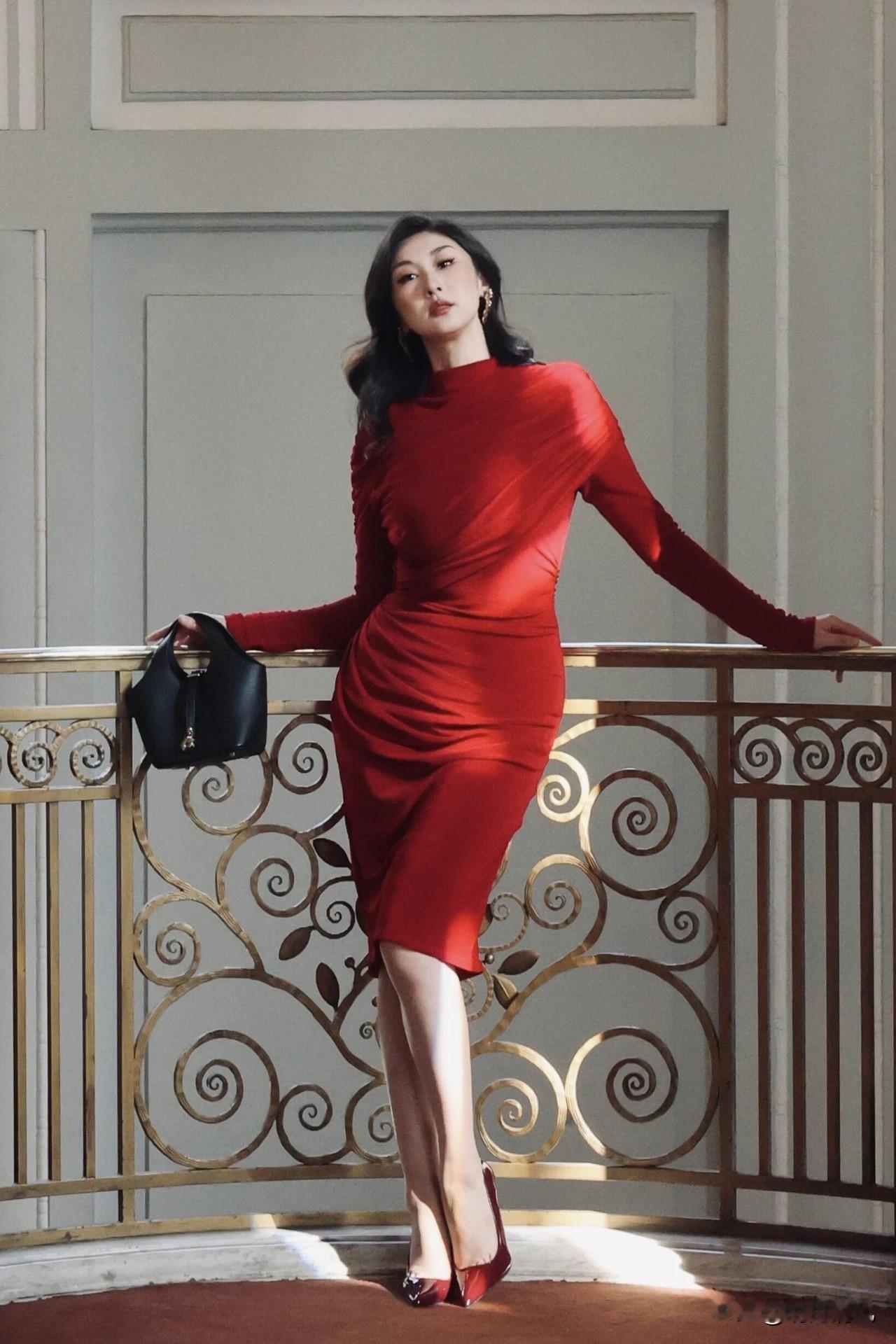 红裙子这东西,真的有点“作弊单品”的意思。正红一穿,整个人精气神儿都提起来了,想