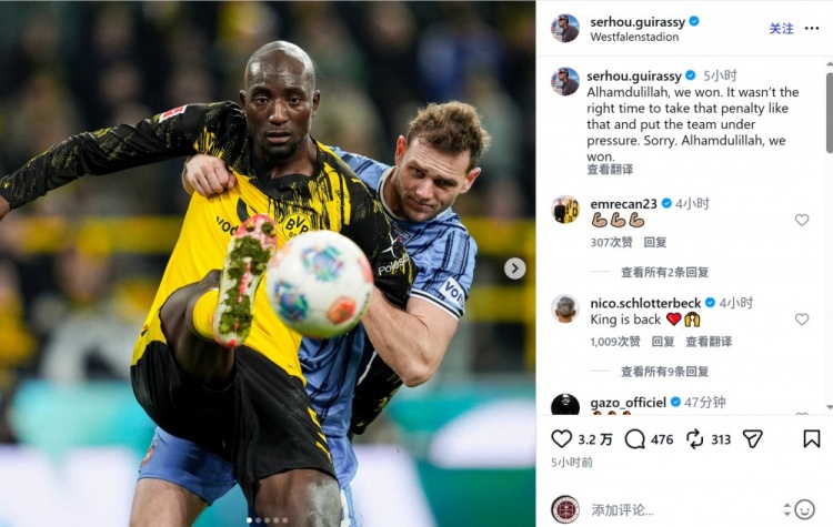 此役第82分钟,吉拉西造点但罚丢,错失了将比分扩大为4-2的机会。吉拉西社媒写道:“感谢真主,我们赢下了比赛,但当时不该那样罚点球,给球队带来了压力,抱歉。”