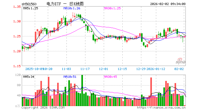 电力ETF(561560)业绩比较基准为中证全指电力公用事业指数收益率,管理人为华泰柏瑞基金管理有限公司,基金经理为尤家妤,成立(2022-04-26)以来回报为24.58%,近一个月回报为2.38%。