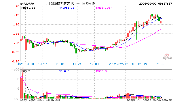 上证380ETF易方达(530380)业绩比较基准为上证380指数收益率,管理人为易方达基金管理有限公司,基金经理为张泽峰,成立(2025-09-22)以来回报为12.60%,近一个月回报为10.85%。