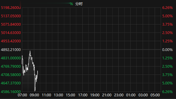 上证报中国证券网讯据Choice数据,2月2日早盘,国际现货黄金白银延续跌势,截至9:38,现货黄金报4716.20美元/盎司,跌3.6%,盘中一度跌破4600美元/盎司关口;现货白银报84.06美元/盎司,跌1.31%,盘中一度跌破77美元/盎司。