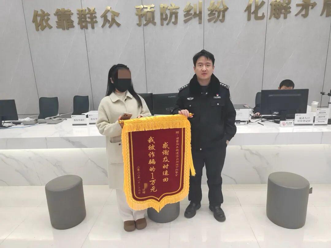 凭借丰富的办案经验和高效的协作配合,民辅警争分夺秒与诈骗分子“赛跑”,精准锁定资金流向,快速开展止付、追回工作。当天,便成功将程女士被骗的1万元全额追回,并第一时间返还至其银行账户。
