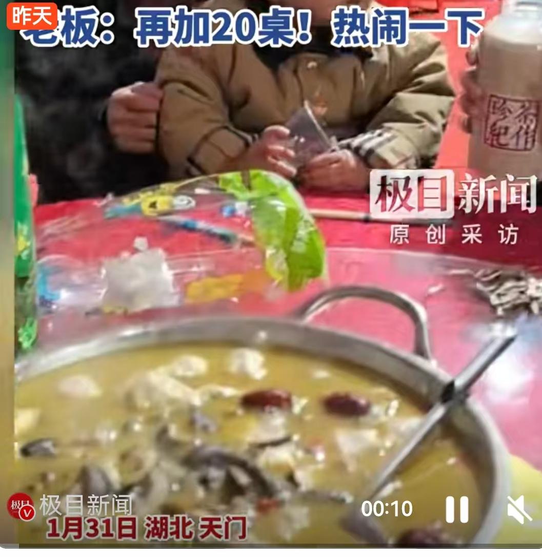 团年饭吃出“千军万马”的气势,这事儿你见过吗?1月31日,湖北天门的一场团年宴彻